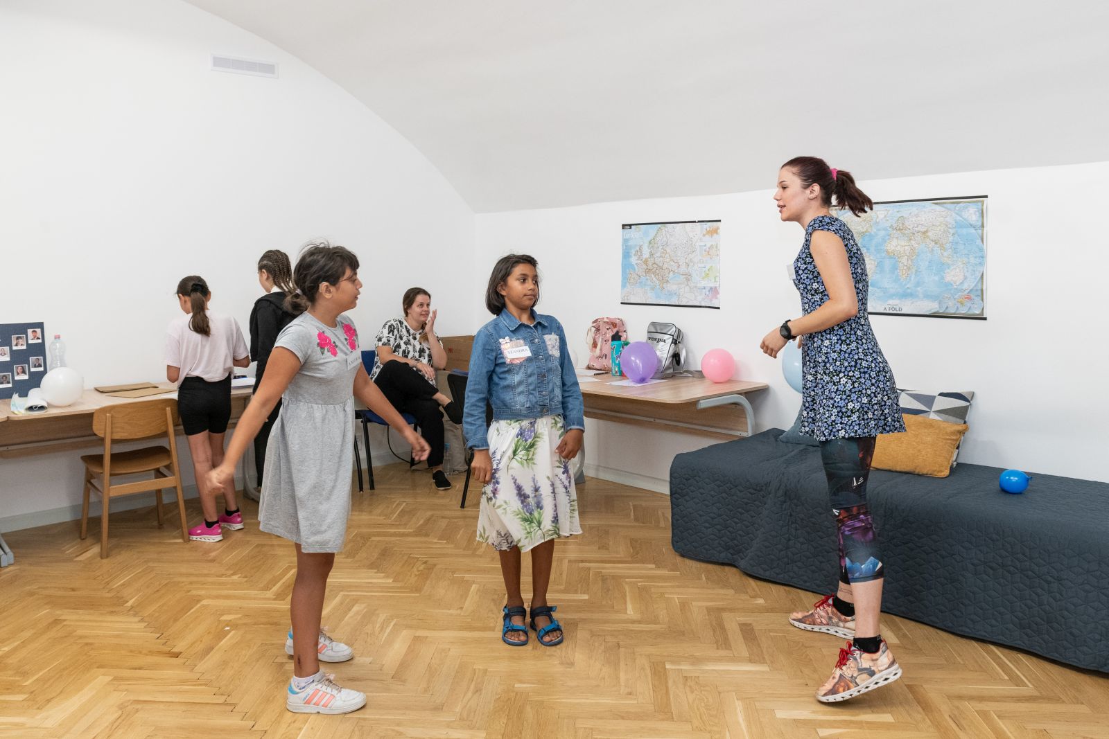 A Vörösmarty Színház társulatának tagjai, Ballér Bianka és Molnár G. Nóra színművészek, valamint Fabacsovics Lili dramaturg drámapedagógiai foglalkozást tartottak, két csoportra osztva a 6-18 év közötti csapat tagjait. A mozgásos feladatokban az együttműködés és a figyelemkoncentráció fejlesztése is hangsúlyt kapott. A drámajátékokban a személyiség kibontakoztatása, a kreativitás, a közös meseírás során az egymásra figyelés és a memóriaerősítő gyakorlatok is helyet kaptak. A gyerekek nagyon jól érezték maguk, meg is éheztek, mire megérkezett a finom ebéd, amely nagy örömükre pizza volt, majd a jó hangulatú napot fagyizással zárták.