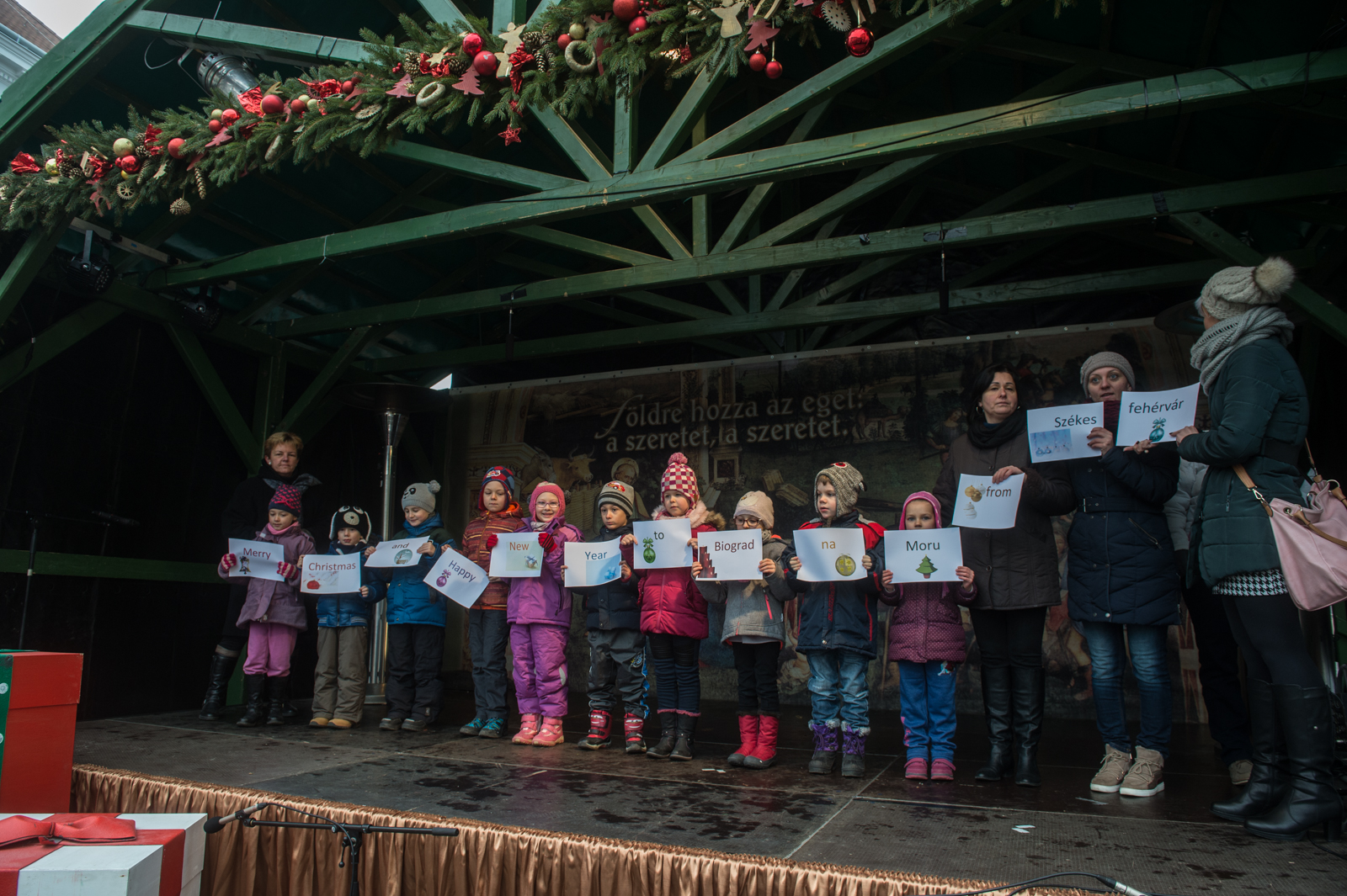 A könyvosztás előtt a Rákóczi Utcai Óvoda Mancz János Tagóvodájának Süni csoportja adott műsort „Karácsonyi csengő” címmel, akikkel egy közös fotó is készült. Testvérvárosunknak, Biogradnak üzentek, áldott karácsonyt és boldog újévet kívánva!