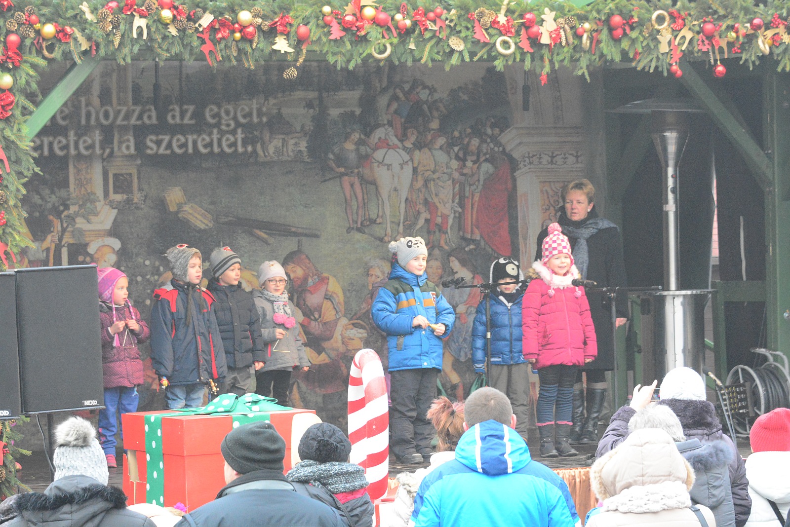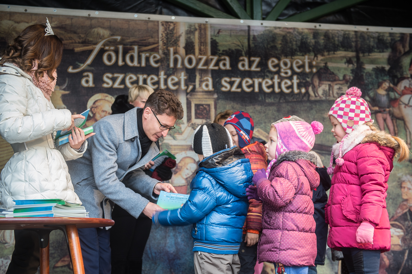 A könyveket ma délelőtt az Adventi színpadon zajló gyerekműsorok keretében adta át a polgármester a városi óvodák igazgatóinak, valamint az intézmények képviseletében jelenlévő egy-egy óvodásnak a mese írójával, Ocskay Zsuzsánnal közösen. Az ajándékok kiosztásában Fehérvár Szépe, Dudás Patrícia is segítségükre volt.