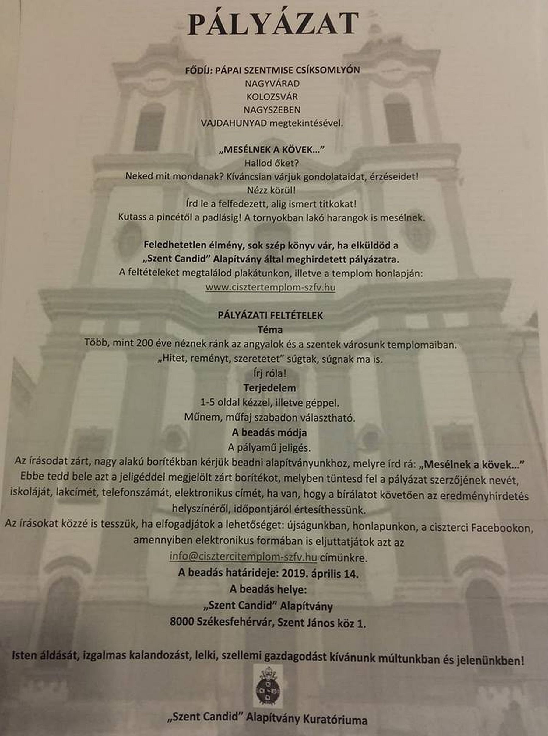 „Mesélnek a kövek…" - pályázatot hirdet a Ciszterci templom Szent Candid Alapítványa