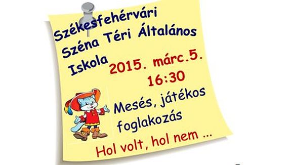 A Széna Téri Általános Iskola mesés, játékos foglalkozásra hívja az érdeklődő nagycsoportos óvodásokat 2015. március 5-én, csütörtökön, 16.30-kor „Hol volt, hol nem…” címmel. A program keretén belül a gyerekek találkozhatnak a leendő elsős tanító nénikkel.