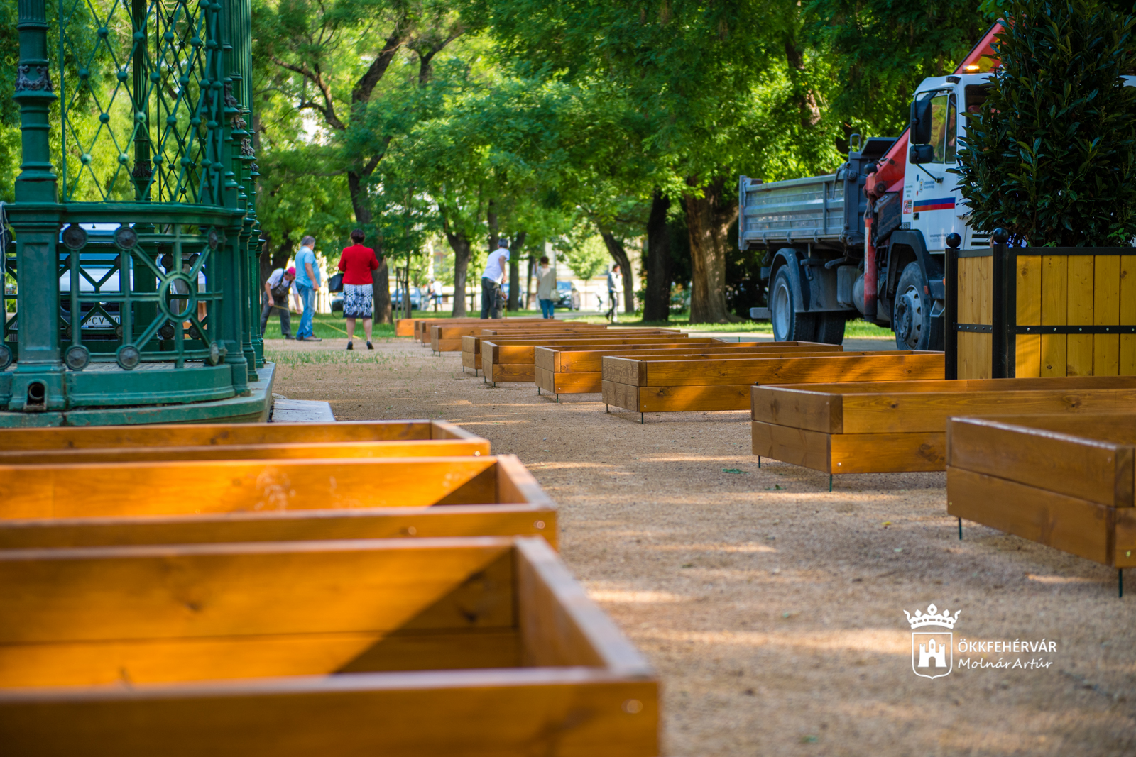 A Városgondnokság már csütörtökön elkezdte berendezni a ligetet a kis kertészeknek.
