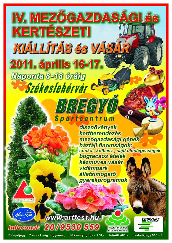 Idén is megrendezik a IV. Tavaszi Mezőgazdasági és Kertészeti Kiállítás és Vásárt Székesfehérváron a Bregyó Sportcentrumban. A látogatók megismerkedhetnek a kerttervezés, kertépítés és berendezés eszközeivel is. Disznövénytermelők, őstermelők kínálják portékáikat. A látogatók válogathatnak egynyári és évelő növényekből, kertészetek által kínált különleges cserjékből. Füge, gránátalma, bambusz, citrom, narancs csemeték kiánálják is magukat.