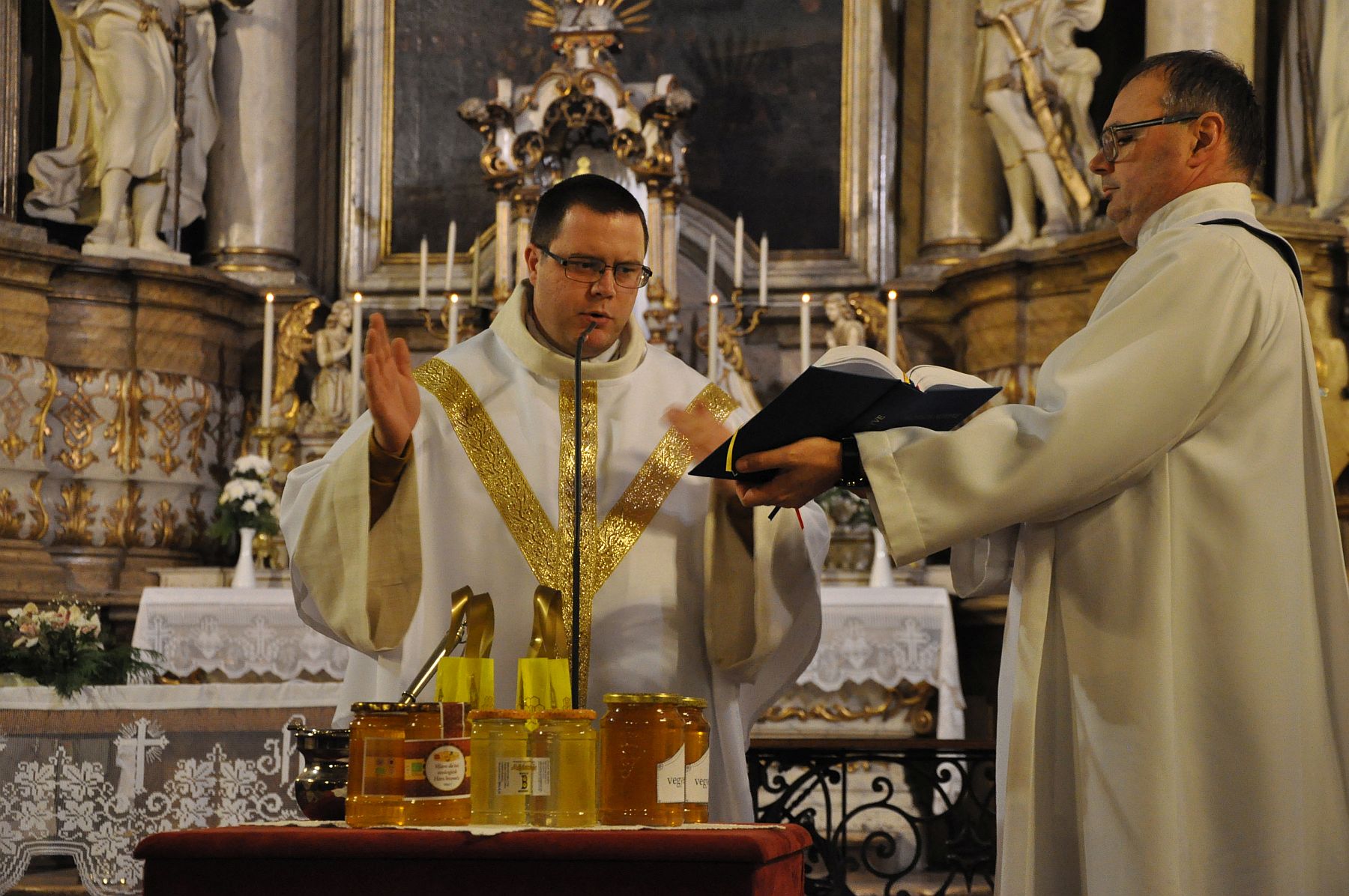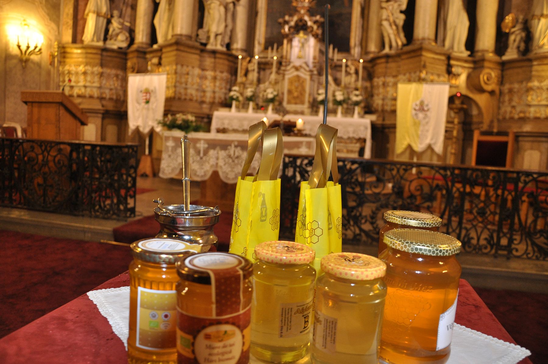 Pénteken este Visnyei László, a belvárosi plébánia káplánja celebrált ünnepi szentmisét a Szent Imre templomban, melynek végén megáldotta a mézlovagrendek tagjait és a mézeket.