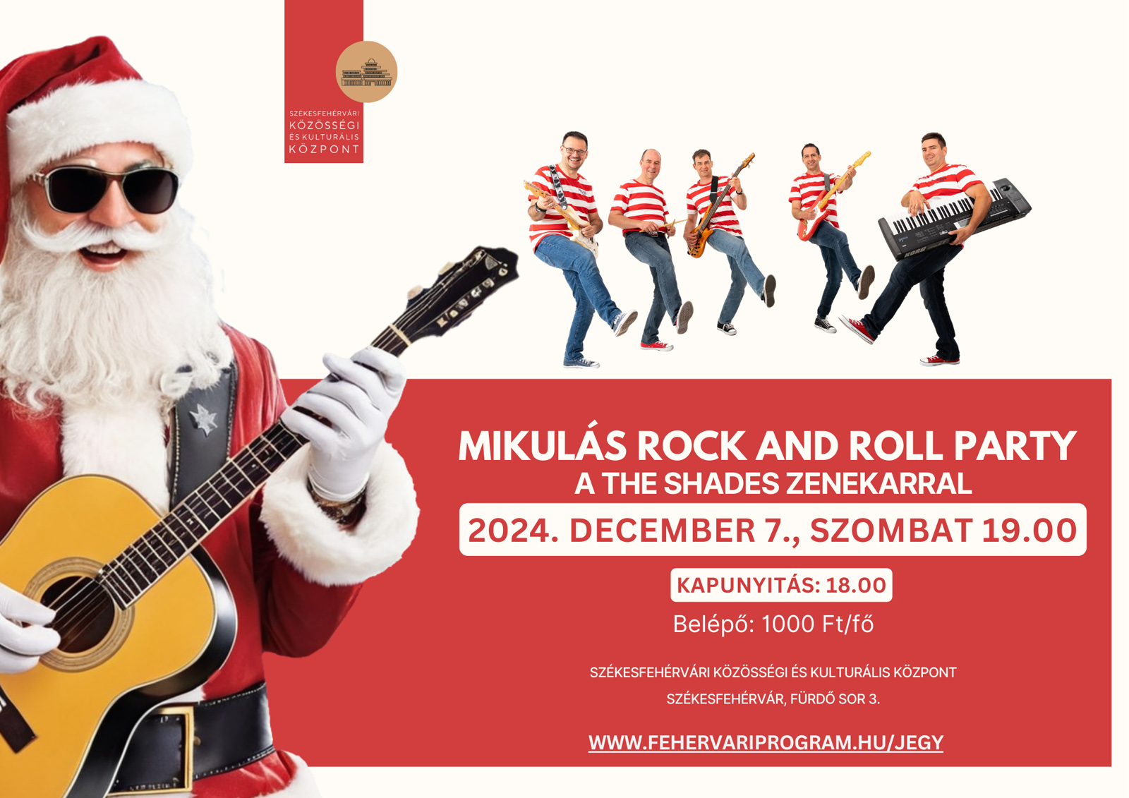 Még szombatra is jut Mikulás-program Székesfehérváron, igaz ez már nem a legkisebbeknek szól. A The Shades zenekar invitál táncos buliba december 7-én, szombaton 19 órától a Székesfehérvári Közösségi és Kulturális Központ Fürdő sori épületébe. A Mikulás rock’n’roll partyn az ’50-es, ’60-as évek hazai és nemzetközi slágerei csendülnek fel, Elvis Presley-től a Hungáriáig. Az eseményre a www.fehervariprogram.hu/jegy oldalon lehet belépőt váltani.