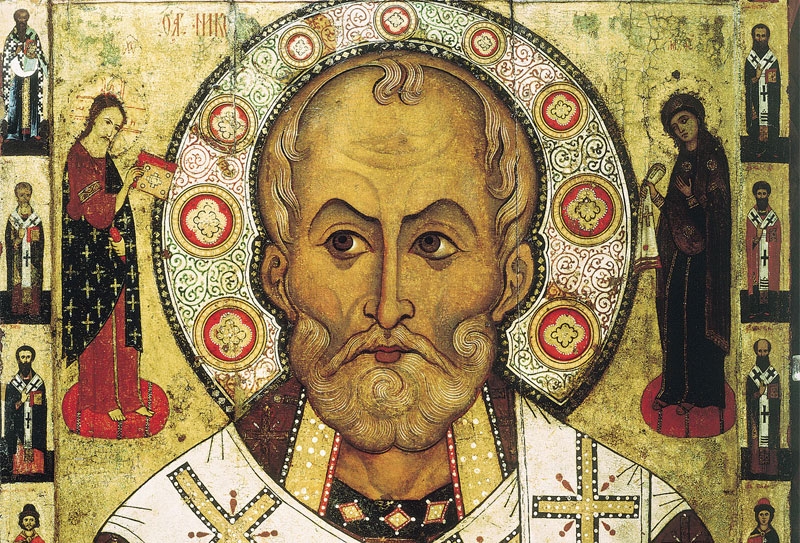 Szent Miklós püspök a IV. században élt a mai Törökország területén, a kis-ázsiai Müra városában. Gazdag kereskedő szülők egyetlen gyermekeként született 270 körül Patarra vagy Lükia településen, Kis-Ázsia dél-nyugati csücskében. Jótéteményeinek se szeri, se száma. Egészen fiatal volt még, amikor titokban megajándékozott pénzzel egy édesapát, hogy három leányát férjhez tudja adni, azaz hozományt vehessen, ami akkor alapvető feltétel volt - ezzel megakadályozta, hogy a lányok örömlányokként tartsák fönn magukat és családjukat. Égi jelre választották Müra püspökévé. Tisztelete a VI. századtól Keleten és Nyugaton egyaránt elterjedt. A bizánci birodalomban már nagyon korán tisztelték. A IX. század előtt már Oroszország védelmezője lett a tatárok ellen és minden más ellenséggel szemben. Nyugat-Európának is az egyik legnépszerűbb szentje lett, a házasság és az anyaság oltalmazója, a gyermekek barátja.