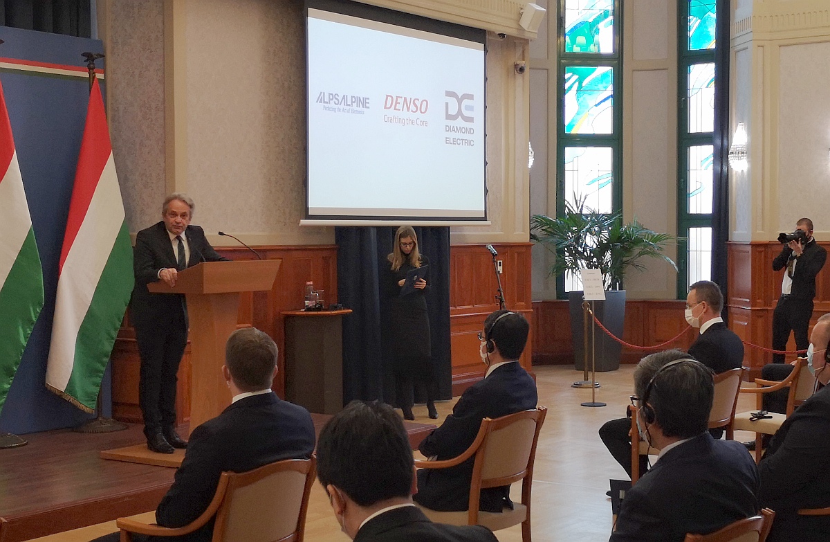 A székesfehérvári DENSO Manufacturing Hungary, a biatorbágyi Alpine Európai Elektronikai Ipari Kft., és az esztergomi Diamond Electric Hungary Kft. új gyártási technológiát vezet be, növelik a magyar autóipar rendelkezésére álló beszállítói kapacitásokat, a beruházások biztosítják, hogy a járműipar továbbra is húzóágazat lesz a magyar gazdaságban - mondta a külgazdasági és külügyminiszter.