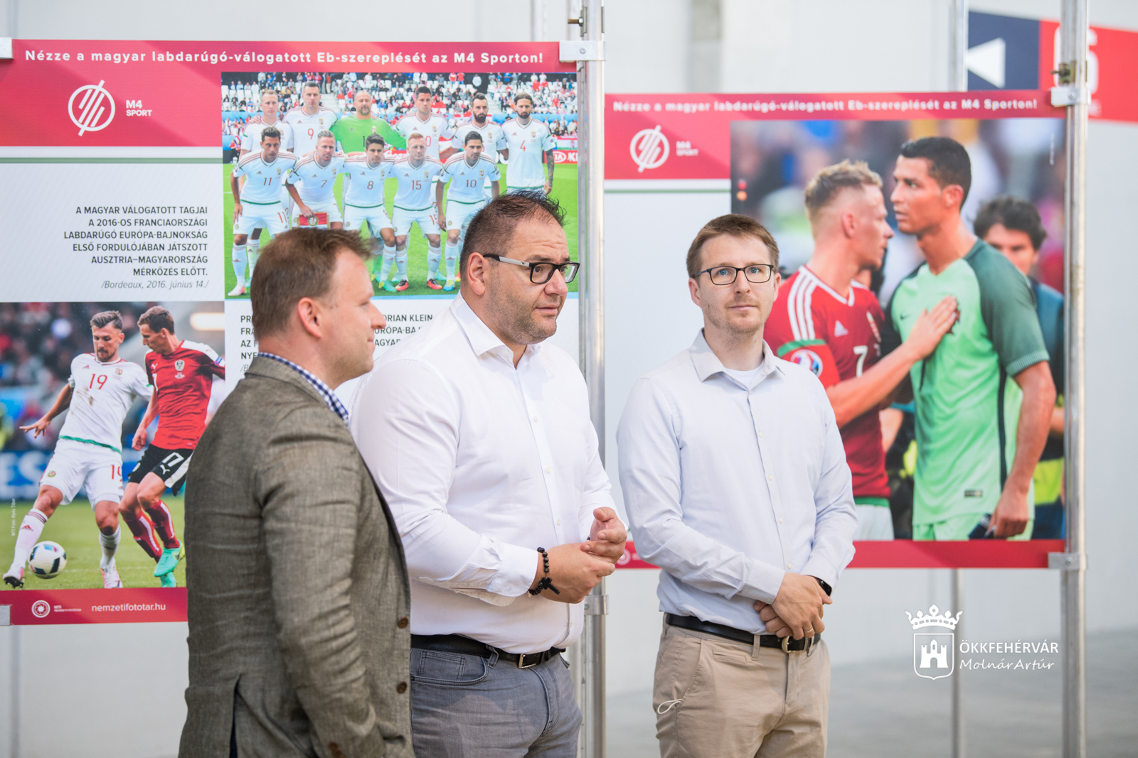 A szabadtéri bemutatót a fehérvári EB-terasz mellett Mészáros Attila alpolgármester, Répászky Lipót, az MTVA Archívum vezetője és Fürst-Borsos Ádám, az MTVA Sajtó és Marketing Irodájának vezetője nyitották meg.