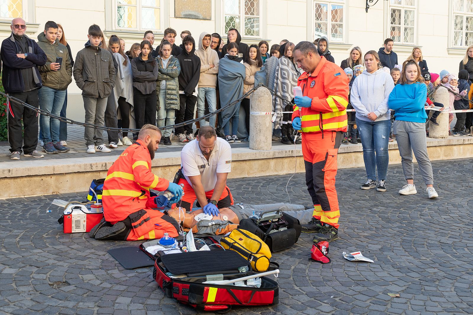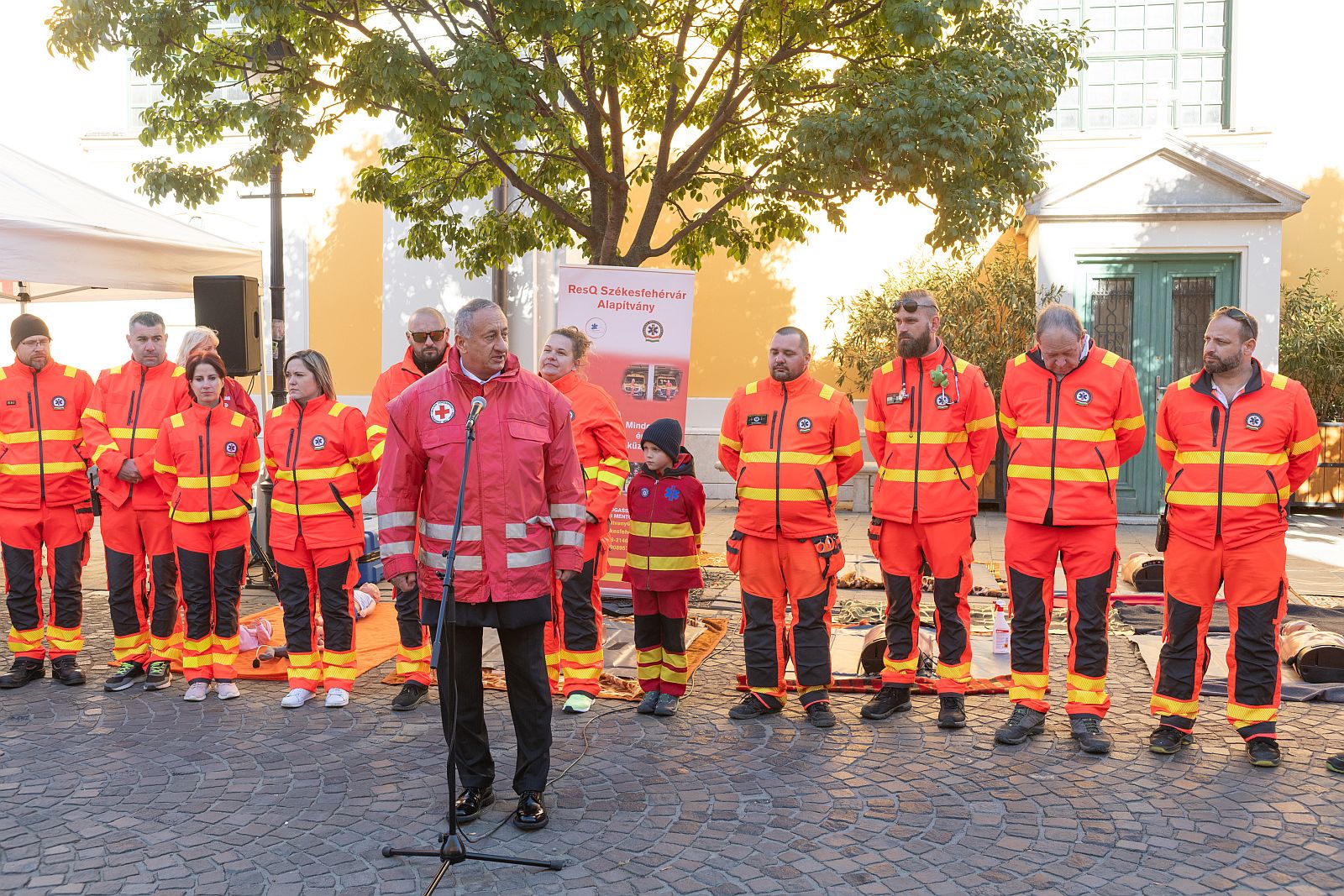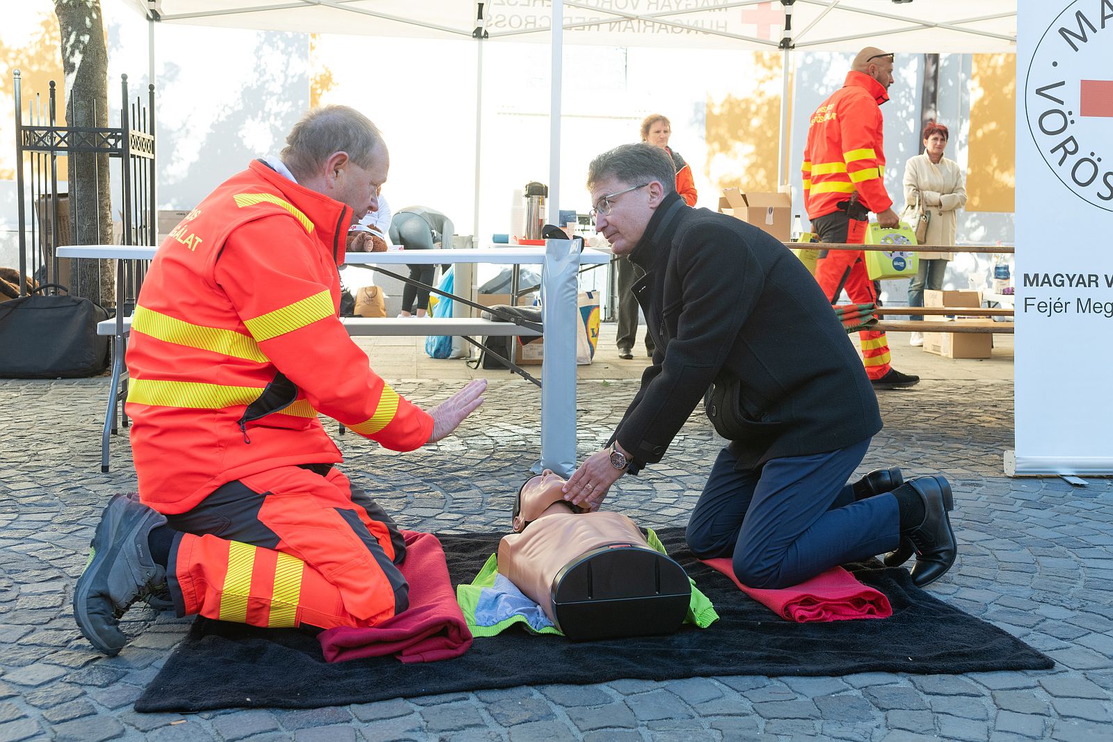 A Magyar Vöröskereszt Fejér Vármegyei Szervezete, a ResQ Alapítvány és az Országos Mentőszolgálat szakemberei egészen a délutáni órákig tartanak bemutatókat és oktatásokat a Városház tér környékén az érdeklődő járókelőknek.