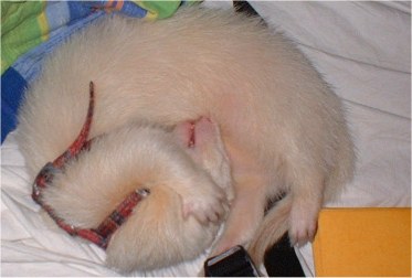Vadászni már csak akkor vadászik a görény ha tanítják rá, egyébként kedvesen az ember kabátja alá bújva keres biztos menedéket.