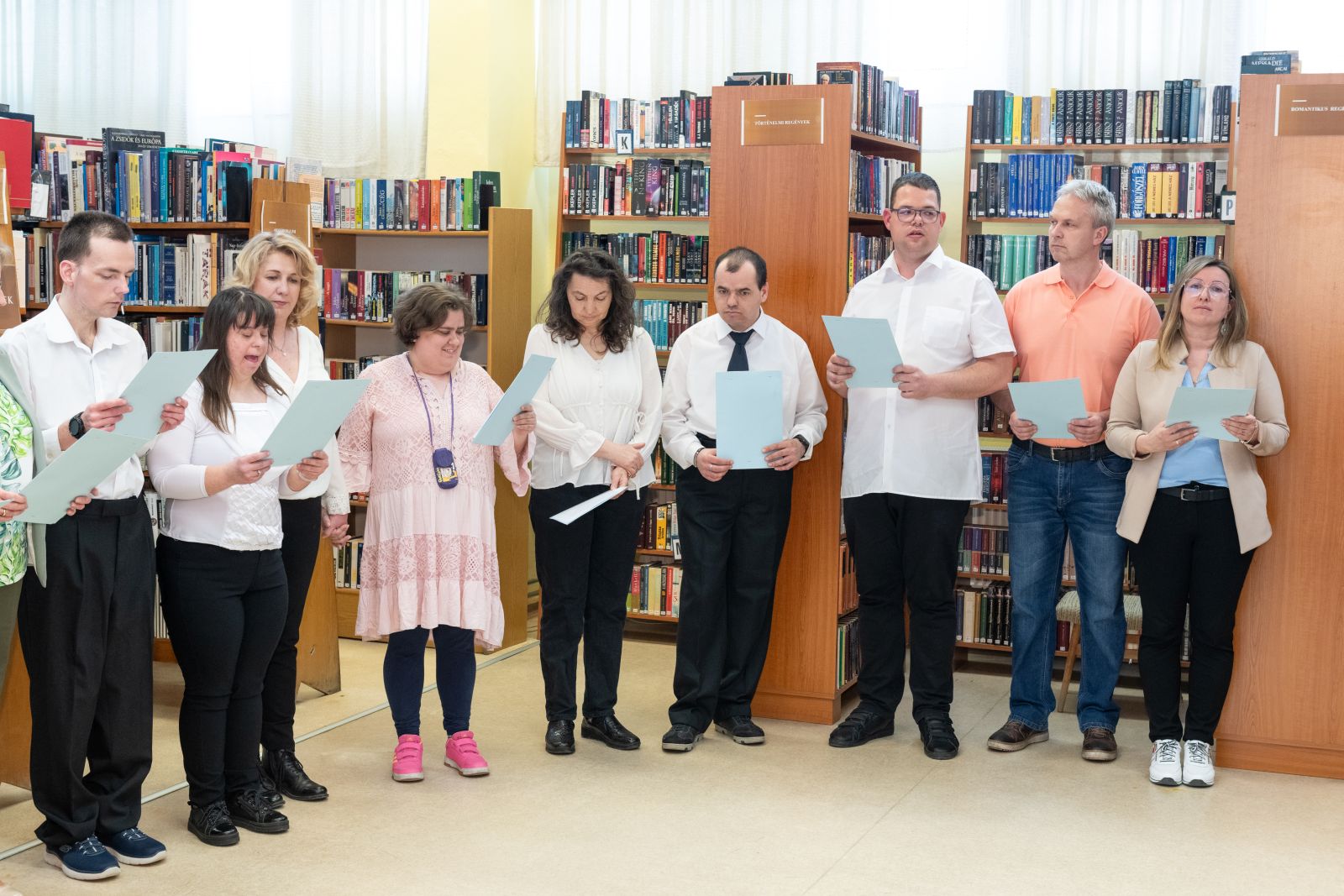 A Segíts nekem veled lenni! című kiállítás egy hónapon át látogatható a tagkönyvtár nyitvatartási idejében. A megnyitón részt vett Szontaghné Kovács Erika szociális ügyekért felelős tanácsnok és Deák Lajosné önkormányzati képviselő is.