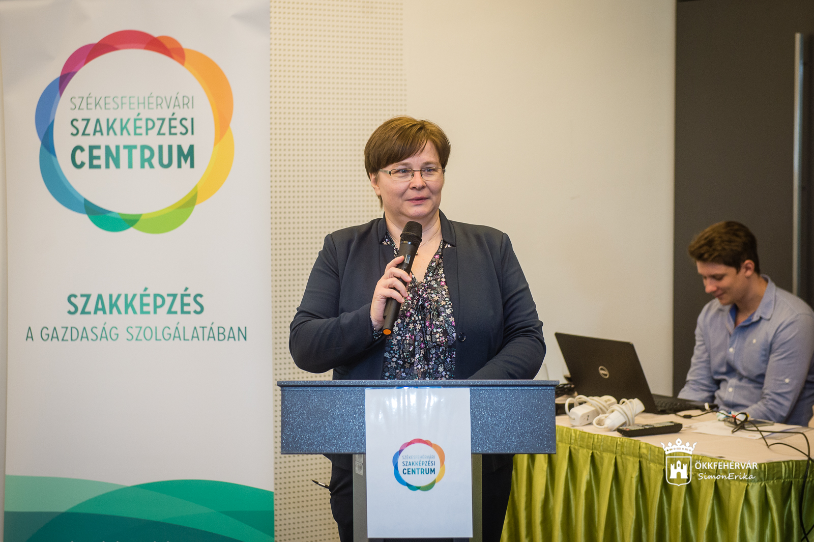 Kulcsár Szilvia a Székesfehérvári Szakképzési Centrum főigazgatója az iskolákról és a lemorzsolódásokról beszélt előadásában.
