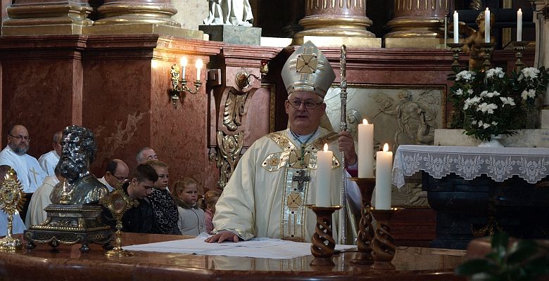A szentmisén Spányi Antal megyés püspök az egyházközségek családjainak képviselői jelenlétében, Szent István, Boldog Gizella és Szent Imre ereklyéi előtt az égi közbenjárásuk által a magyar Szent Család oltalmába ajánlotta a családokat. „Jó nekünk most ünnepelni az első Magyar Szent Családot, kik ott állnak mellettünk és minden nemzedék mellett imáikkal, példáikkal, égi közbenjárásukkal. Sokszor azt hisszük, másoknak könnyebb a sorsuk, mások szerencsésebbek. Látnunk kell, hogy az Első Magyar Szent Család furcsa és nehéz helyzetben élt. Mindennapi gondjuk, problémájuk és küzdelmük volt egy jelenlévő erős pogány hagyomány. Sokan nem akarták elfogadni, nem akartak beilleszkedni abba a rendbe, amelyet a Katolikus Egyház, a kereszténység hozott a számára. Ebből a kettősségből hatalmi harcokkal is szembe kellett nézni, és hosszú időn keresztül a zaklatásnak, a viadaloknak árnyéka vetült a Családra. Mi nagyszerű példát kaptunk Szent Istvántól, Boldog Gizellától és Szent Imrétől, akiknek emléke nem halványul, akik életük tanításában, megélt sorsuk vállalásában, zúgolódás nélküli hitükkel minket is erősítenek” – mondta Spányi Antal megyés püspök, aki azt is kiemelte, hogy a kor emberének sok kihívással kell szembenéznie. Mint fogalmazott: „a sok és hamis információban elbizonytalanodik az ember.”