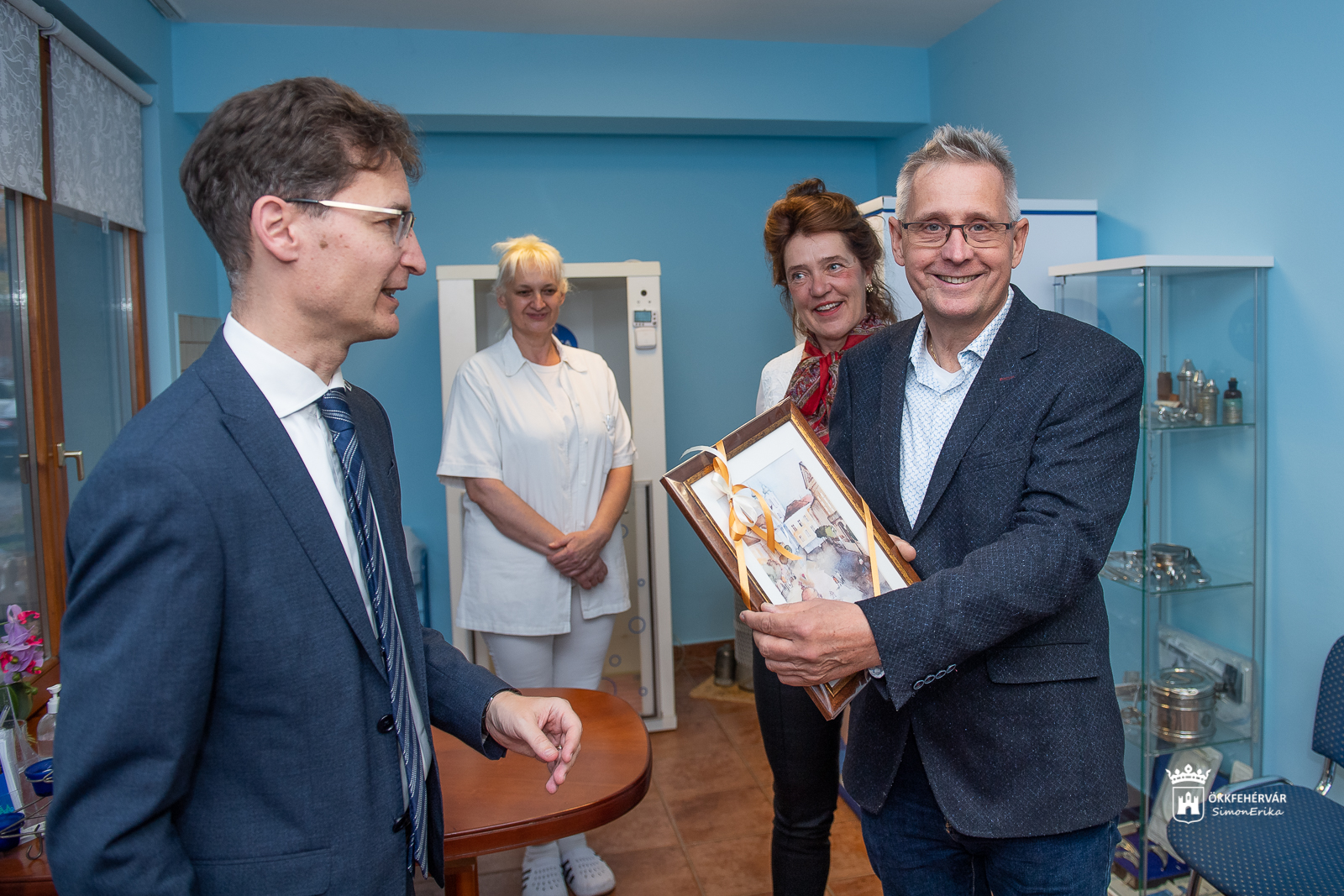 „Az egészségügy vonatkozásában az a legjobb, ha a városban minél több típusú – természetesen szakmailag igazolt – eljárás lehetőségét meg lehet teremteni, hogy ne kelljen egy fehérvárinak máshova elmennie, ha egy ellátásban részesülni szeretne. De azt is tudjuk, hogy minden ilyen egészségügyi eljáráshoz a helyen kívül két további dologra is szükség van: egy jó szakemberre, szakembergárdára és egy megfelelő technológiai színvonalú eszközparkra.” – mondta el dr. Cser-Palkovics András polgármester, aki hétfőn délután látogatta meg rendelőjében az érsebész főorvost.