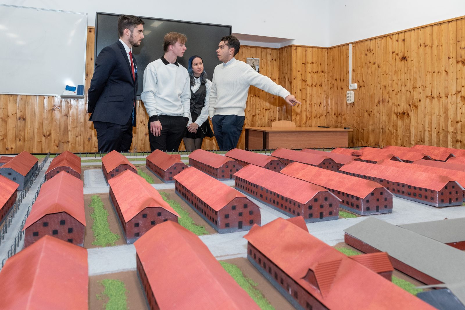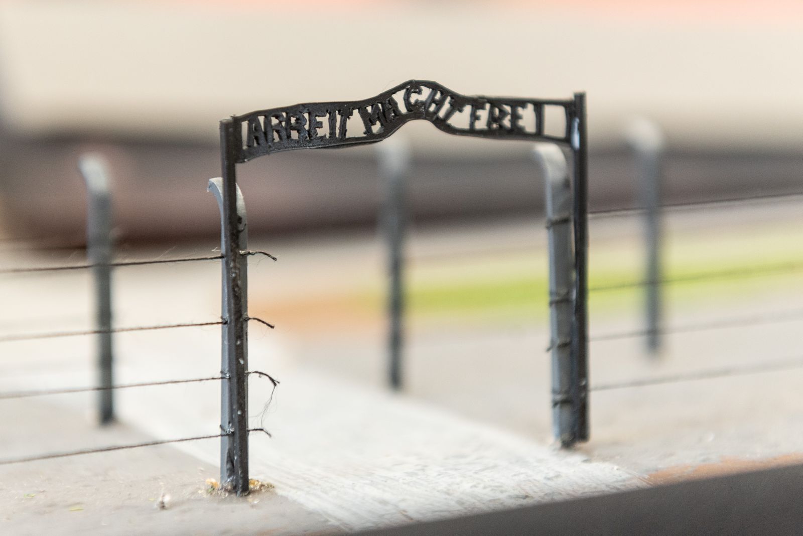 Hatalmas terepasztalok töltik be a Széchenyi Technikum főépületének egyik földszinti tantermét. A kiállított makettek hűen ábrázolják az auschwitz-birkenaui koncentrációs táborok végeláthatatlan barakképületeit, a korabeli felvételekből jól ismert bejáratokat, az „Arbeit macht frei” feliratot, a náci halálvonatokat, a pusztulásba vezető vasúti síneket és magukat az embereket.