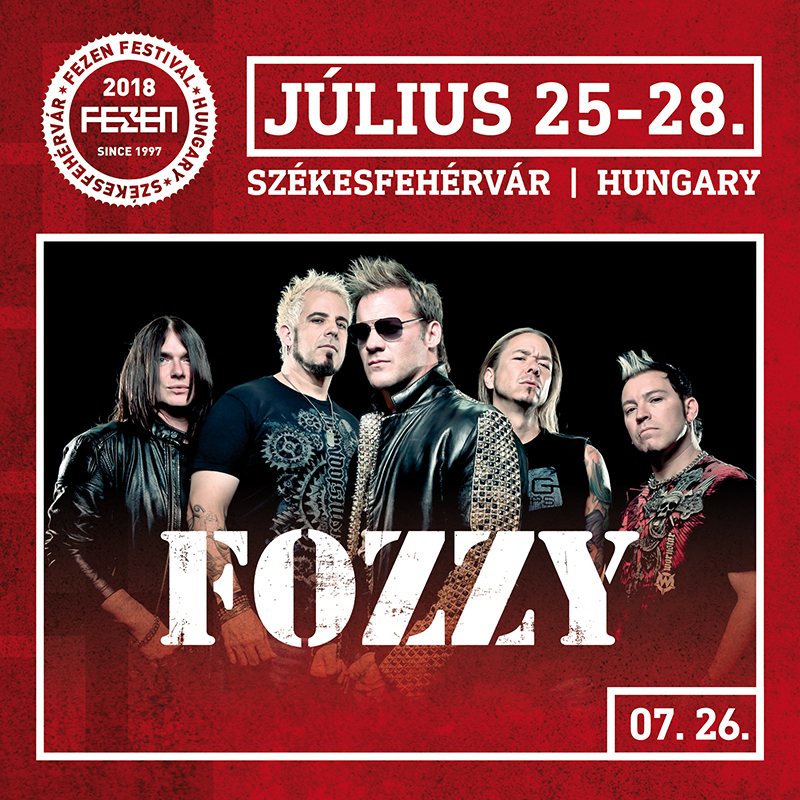 A profi pankrátor, médiahős, énekes Chris Jericho, a Stuck Mojo gitárosával és dobosával Rich Warddal és Frank Fontserával, valamint a Mike Portnoy Adrenalin Mobjában basszerozó Paul Di Leoval és Billy Grey gitárossal alkotja a Fozzyt. Az amerikai rock-metal csapat is friss albummal érkezik Székesfehérvárra, októberben jelent meg Judas című lemezük. Július 26-án a Mr. Big előtt lépnek fel a FEZEN-en.