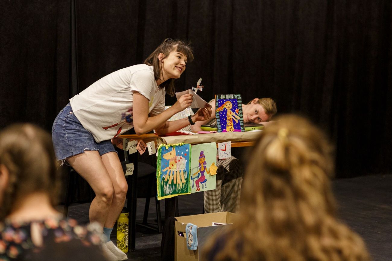 „Ez a regény két fiatal lány naplóbejegyzése, a szerző arra helyezi a hangsúlyt, hogy milyen más szemszögből látják ők ugyanazokat a dolgokat.” – utalt a rendező Kerkay Rita az alapműre, melyből kiindulva létrehozták az előadást. Itt valóban nincs szükség másra, mint a két színésznőre, és pár ötletes, apró kellékre, hiszen kiindulva a tantermi előadás jellegéből, az egész cselekményt egy asztal köré tudják szervezni.