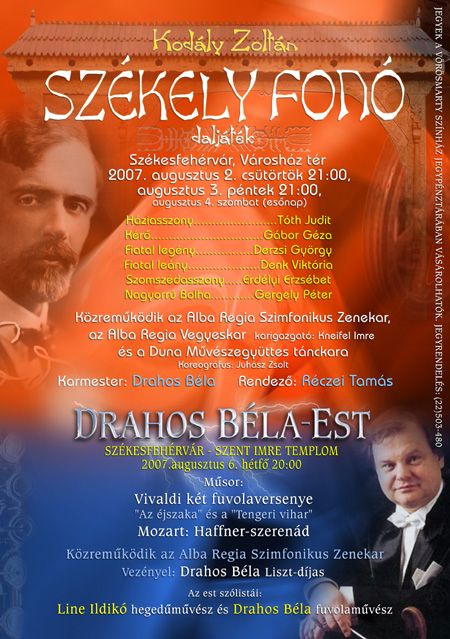 Augusztus 2-án Kodály Zoltán Székelyfonó című daljátékát mutatja be a Musica Regia rendezvénysorozat keretében a Városház téren a Vörösmarty Színház. A daljátékot Réczei Tamás viszi színre, vezényel Drahos Béla Liszt-díjas karnagy. Közreműködik az Alba Regia Szimfonikus Zenekar, a Duna Művészegyüttes Tánckara, az Alba Regia Vegyeskar. Szurdi Miklós színházigazgató a premierrel kapcsolatban kiemelte: "A darabnak nagyon izgalmas díszlete van és a rendező személye a garancia arra, hogy amit Kodály akart, az a lélek, az a történet világosabban benne lesz az előadásban, mint általában a Székely fonó előadásaiban szokott."