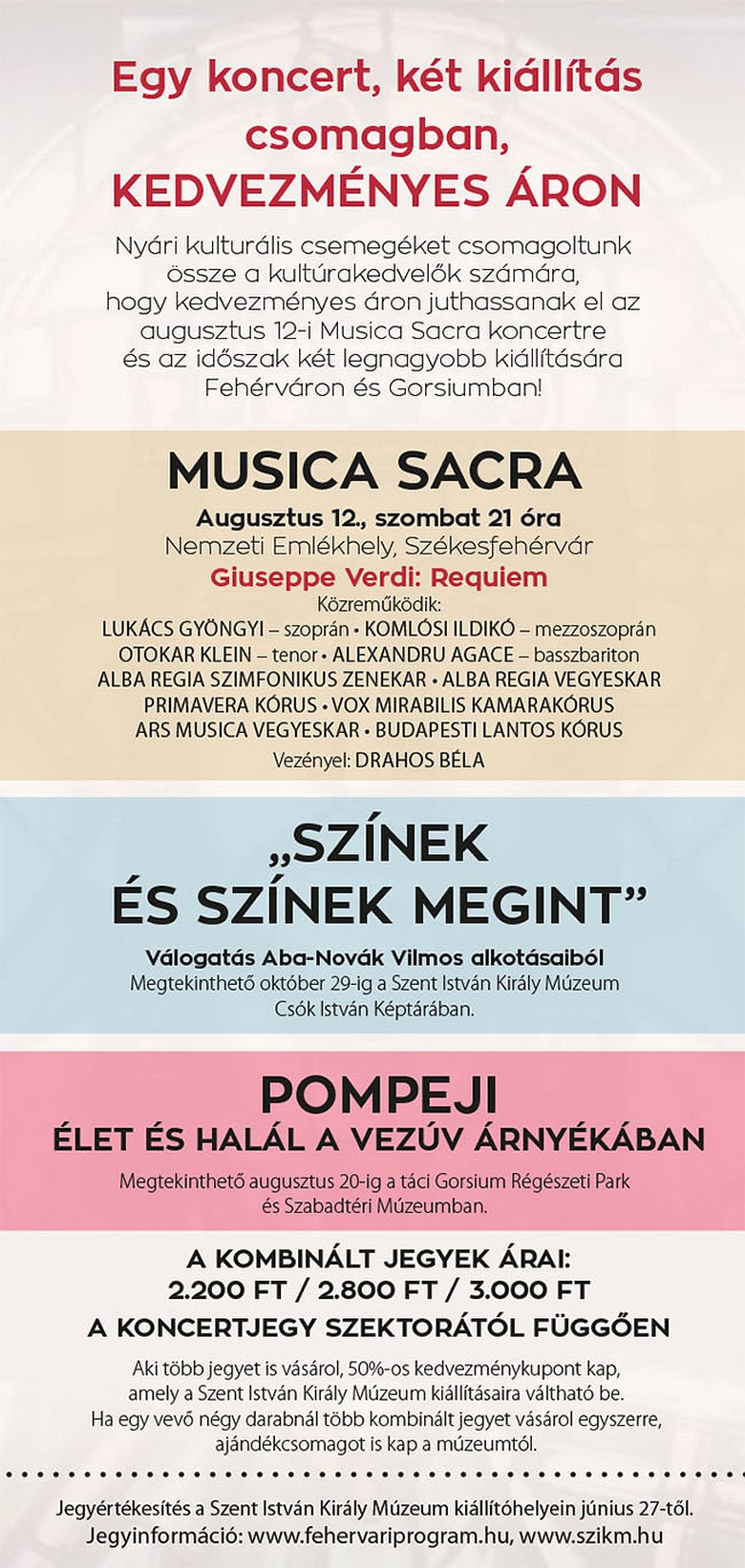 Musica Sacra, Aba Novák, Pompeji - kulturális élménycsomag Székesfehérváron