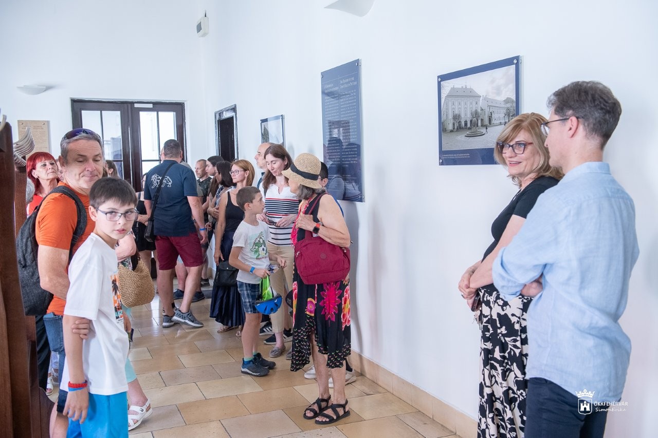 A Városháza hűvös aulájában egy csoport várakozott arra, hogy dr. Cser-Palkovics András polgármester vezetésével végigjárja és megismerje a az impozáns épületet.