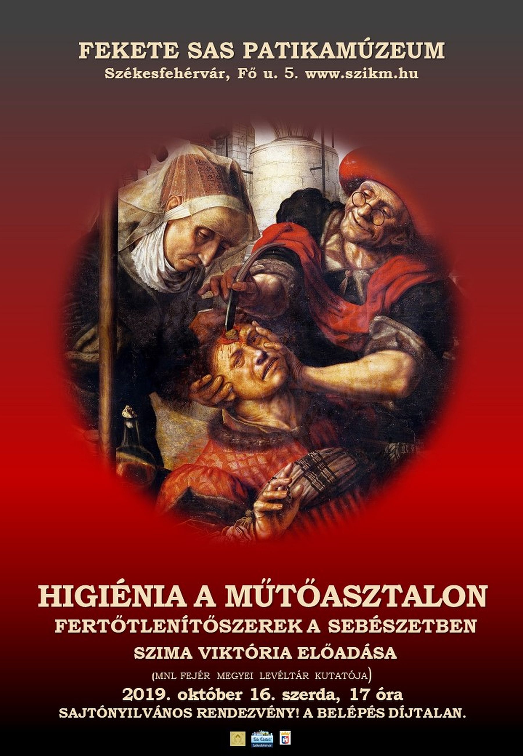 Évezrednyi bizonytalanság után, a XIX. században, végre nagyobb szabású műtétekre is lehetett vállalkozni, mert a csíramentesség biztosítható lett. A sebészetben használt fertőtlenítőszerekről szóló előadás október 16-án, szerdán 17 órakor kezdődik a Szent István Király Múzeum Fekete Sas Patikamúzeum kiállítóterében.