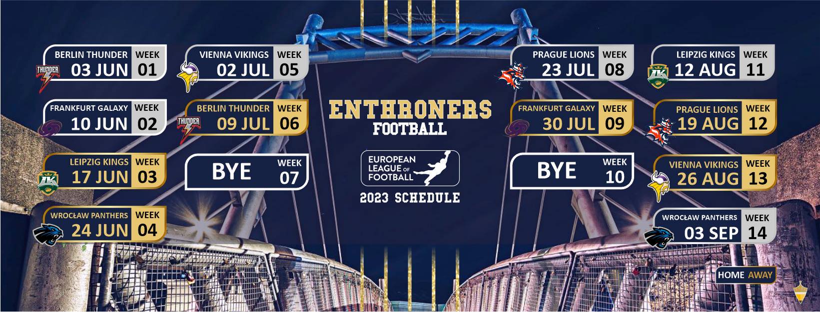 A Fehérvár Enthroners június 3-án, szombaton 17.00 órától a Berlin Thunder ellen kezdi meg a szezont a székesfehérvári First Fielden. A szurkolók ITT vásárolhatják meg a hat darab hazai meccsre szóló szezonbérletet.
