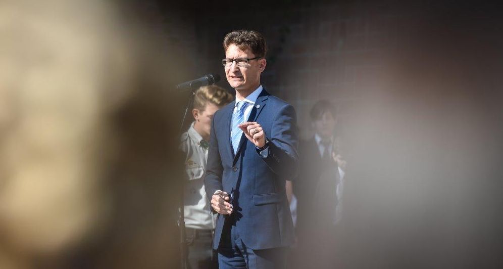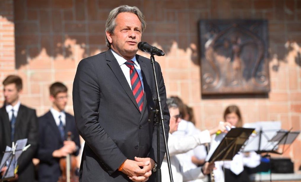 Az ünnepségen Cser-Palkovics András polgármester a diákoktól azt kérte, hogy ha mostantól elmennek a Nemzeti Emlékhely mellett, mindig érezzék azt a büszkeséget, hogy valami nagy dologban nyújtottak segítséget. „Sokkal könnyebb lenne a dolgunk itt Székesfehérváron, ha besétálhatnánk ma a koronázótemplomba, ha odamehetnénk Nagy Lajos sírjához és odatehetnénk ezeket a koszorúkat. Sajnos a történelem viharai nem tették lehetővé ezt, jött a török, jött az iszlám és ma csak romok vannak, amelyek szólnak hozzánk. Szellemben, lélekben, szívben azonban áll ez az épület, amely ma Európa egyik legnagyobb temploma lenne." - hangsúlyozta Székesfehérvár polgármestere, aki kiemelte, hogy a dombormű avatásnak akkor van értelme, ha a fiatalok, akik a jövőt jelentik, átérzik mindezt és büszkék arra, hogy hozzátattek valamit már fiatalon ahhoz, hogy ezt a templomot újjá lehessen építeni.