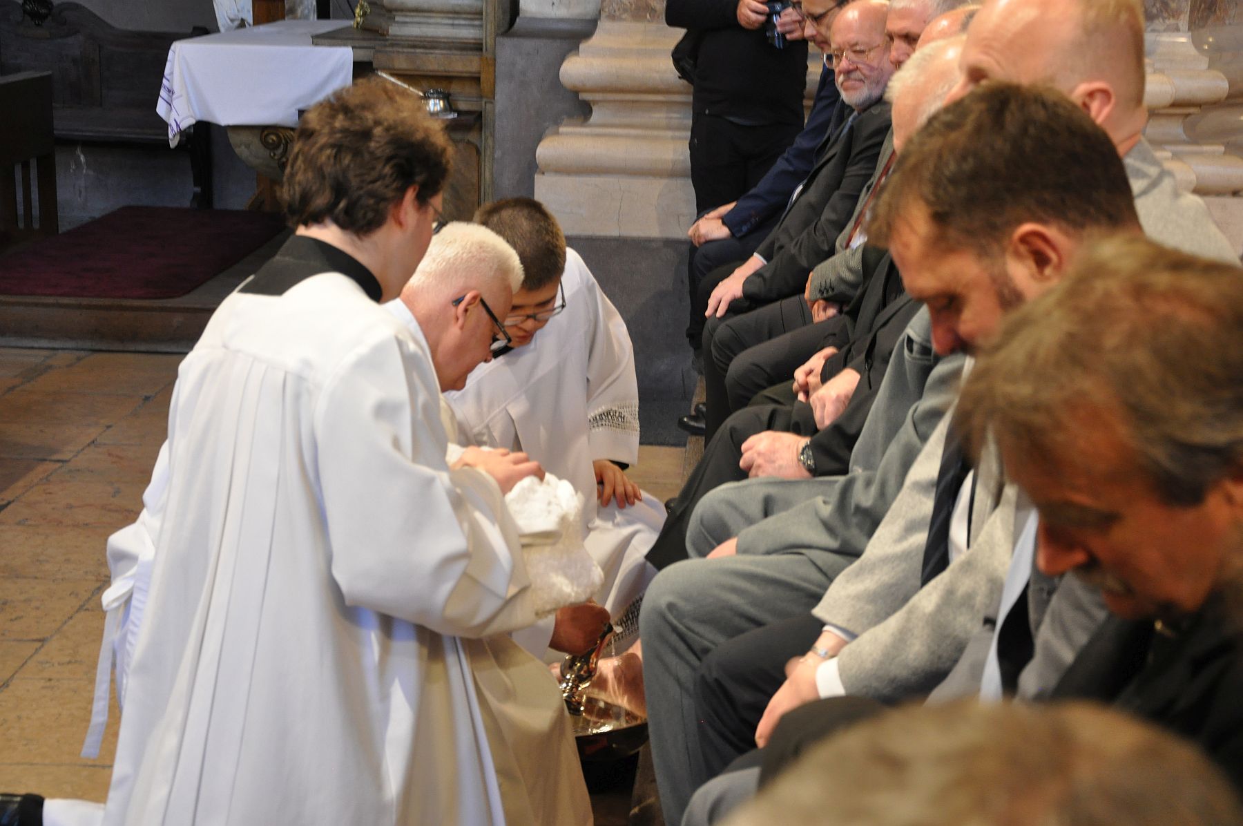 A homíliát követően a megyés főpásztor a miseruhát leváltva vászonkendőt kötött maga elé és megmosta Székesfehérvár plébániáinak képviselőtestületeiből érkezett tizenkét férfi lábát, ezután hitvallás nélkül mondták el a hívek könyörgését.