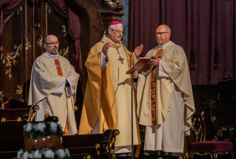 A hit fénye mindent beragyog, mindent megújít, mindent átváltoztat. A hit fénye kétezer éve jelen van mindennapjainkban. 2018-ban a húsvéti események után a templom ajtaja hosszú időre bezárult a liturgia számára. Munkálatok zajlottak és átalakulás. Majd újra eljött az idő, a megújult bazilikába visszatért a fény, a liturgiák, a hívek sokasága, és most újra a húsvét öröme és békéje. Mint ahogy kétezer évvel ezelőtt sem a sötétségé volt a végső győzelem, úgy életünkben sem. A mi dolgunk, hogy a győzedelmes Krisztust kövessük, és Vele forrjunk eggyé. Így válhatunk Isten kezében a béke és az öröm eszközévé, életünk pedig Krisztusnak szánt ajándékká. A szentbeszéd után a jelenlévők megújították keresztségi fogadalmukat, közösen elimádkozták a mindenszentek litániáját.