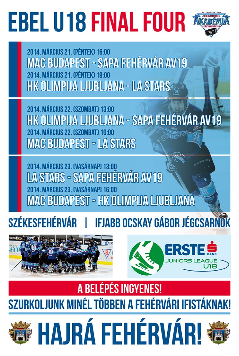 Péntektől vasárnapig az Ifjabb Ocskay Gábor Jégcsarnok ad otthont az EBEL ifi sorozatának négyes döntőjének. A tornán a SAPA Fehérvár AV 19 mellett a budapesti MAC, valamint a szlovén Olimpija Ljubljana és az osztrák LA Stars vesz részt, a lebonyolítás pedig körmérkőzéses lesz, tehát mindenki játszik mindenkivel.
