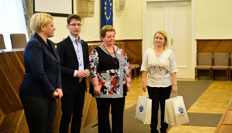 A Városháza Dísztermében köszöntötte őket dr. Cser-Palkovics András polgármester és Deák Lajosné, a határon túli magyarokkal kapcsolatos feladatok tanácsnoka.