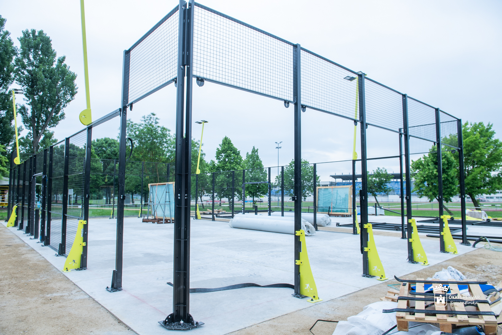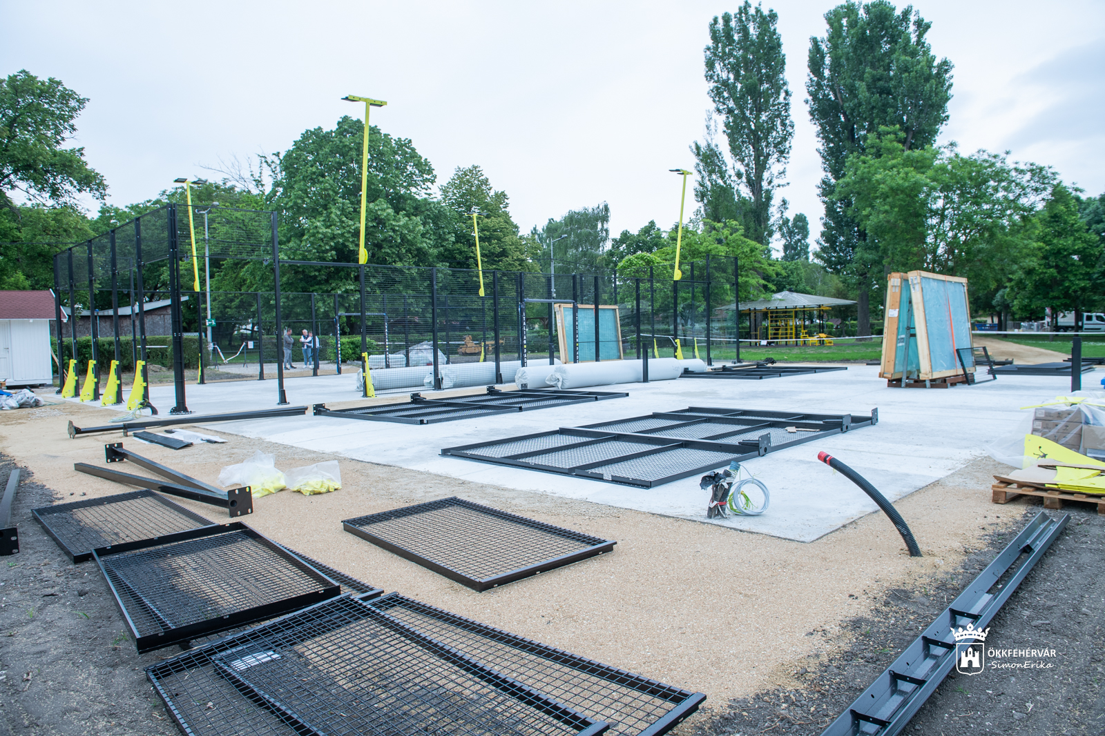 Egyelőre két pályát építenek a Városgondnoksággal közös kooperációban: a pályák alépítményét közbeszerzési eljárás keretében kiválasztott alvállalkozó bevonásával készítette el a Városgondnokság, a pálya felépítményét és burkolatát pedig a bérlő építi meg, akit pályázat útján választottak ki. A megfelelő teherbírás érdekében vasalt vasbeton gerenda veszi körbe az alépítményt, amelyben 35 centiméter vastagon zúzott követ terítettek el a szakemberek, és arra helyezték rá a speciálisan magas minőségű, műanyag szálerősítésű vasbeton betonlemezt. Az előkészítő munkák során a földbe kerültek a világításhoz szükséges védőcsövek is, a pályák körül pedig 2 méter széles zúzottkő felület biztosítja majd a megközelíthetőséget. Már a helyükre kerültek a pályákat hátulról határoló üveglapok, illetve a világítás is, a tervek szerint június közepére készülnek el mindennel, amikorra a pályák megkapják a kék színű, műfüves borítást is.