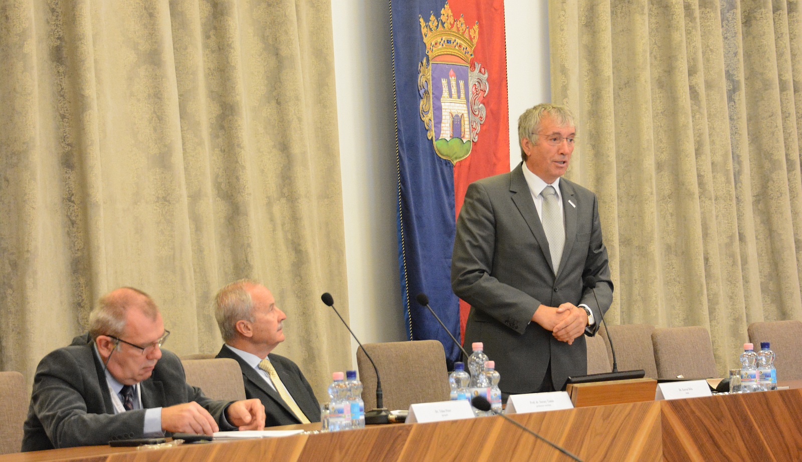 Prof. Dr. Sorosy Tamás köszöntőjében úgy fogalmazott, hogy a NATO követi a nemzetközi helyzet változásait és a kétpólusú világ felbomlása után új feladatai vannak. A konferencia alapvető célja pedig, hogy az előadásokkal ismeretet adjanak, hogy hogyan is lehet a fiatalokhoz közelebb vinni a NATO-t. "Valemennyien érezzük, hogy hiányosságok vannnak ezen a területen és ki-ki a saját munkájában tudja megtenni azt, hogy a fiatalokat ilyen ismeretekkkel felvértezzék. A NATO mi vagyunk, hiszen tagjai vagyunk 1999 óta." - mondta.