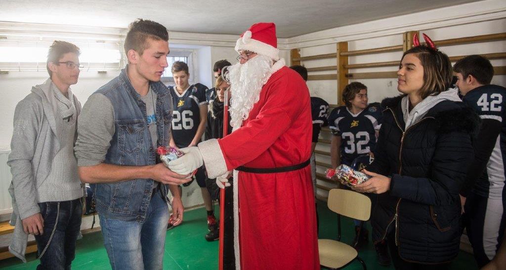 Közel 400 nehéz sorsú gyermeknek gyűjtöttek Mikulás-csomagot a hétvégi, Budapest Eagles elleni barátságos mérkőzés alatt a Fehérvár Enthroners tagjai. Az elmúlt évek szép hagyományát folytatva a csapat Télapója kedden négy helyszínre is ellátogatott, ahol átadja a gyerekeknek a csokikból, szaloncukrokból, gyümölcsökből, dióból és mogyoróból összeállított Mikulás-csomagokat.