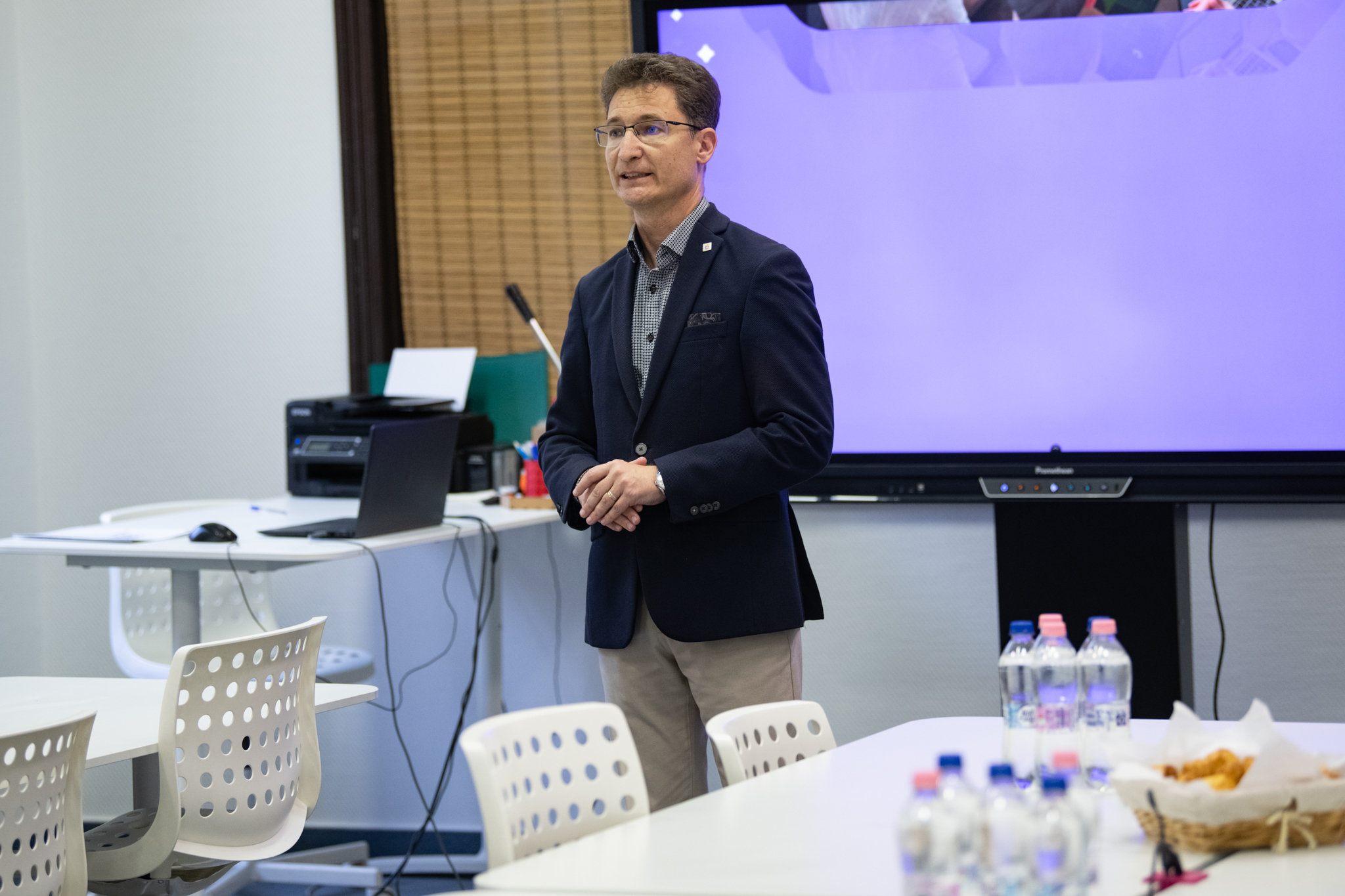 Laufer Tamás, az Alba Innovár vezetője köszöntőjében felidézte, hogy a város vezetésének támogatásával hat évvel ezelőtt indították el az okostanterem programot. „Valójában nem is program, hanem egyfajta módszertan, egyfajta híd ez, ami összeköti az iskolákat a valós világgal. Olyasfajta kompetenciákat próbálunk bejuttatni az iskolákba, amelyek révén a diákok könnyebben tudnak majd beilleszkedni az életbe, könnyebben tudnak menetelni a gazdaság értéklétráján is.”
