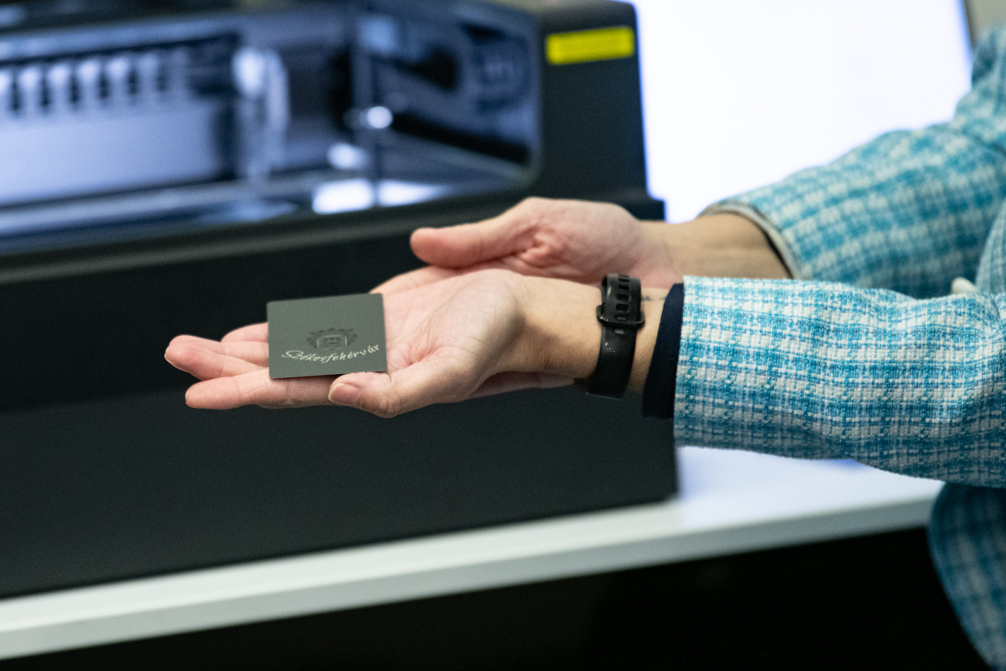 Az ünnepség végén egy ilyen korszerű lézervágó és gravírozó eszköz működését mutatták be az Alba Innovár dolgozói: a gép Székesfehérvár címerét és nevét gravírozta be egy műanyag lapba. A technológia fémen, fán is kiválóan működik, így az iskolákban már csak a diákok fantáziáján és kreativitásán múlik, miket készítenek majd ezekkel a különleges gépekkel. S ha erre képessé válnak, s a végén kezükbe foghatják a saját maguk tervezte, gyártotta dísztárgyat, a mosoly az arcukon biztosan nem marad el!