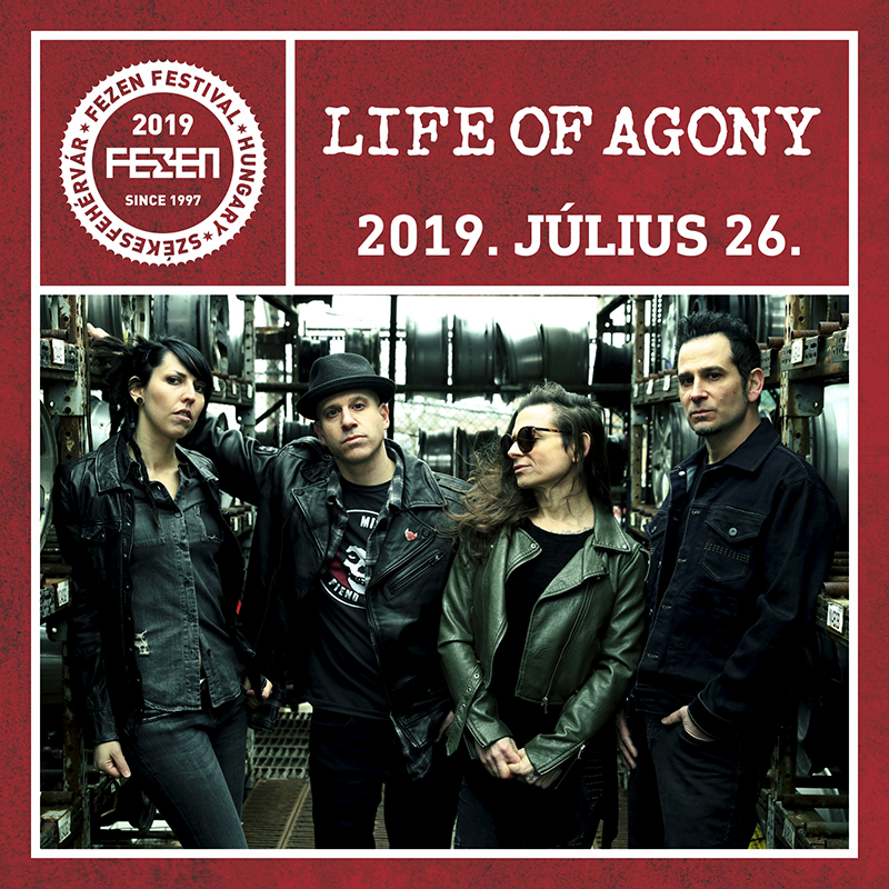 30 éves jubileumukat ünneplik a FEZEN-en a Life of Agony tagjai. Rögtön bemutatkozó albumukkal olyan munkát tettek le az asztalra, amit 25 év távlatából sem lehet elfelejteni, a River Runs Red című korongot a Rolling Stone magazin minden idők 100 legjobb metalalbuma közé is beválogatta. A viharos múltba persze két szünet is tartozik, de a Keith-ből közben Mina Caputová váltó régi-új énekesükkel, a szintén alapító Joey Z.-vel és Alan Roberttel, valamint Veronica Bellinoval fellálló banda aktívabb, mint valaha. Joey Z. szerint hamarosan új lemezzel jelentkeznek, és hiába vannak 30 éve a pályán, még mindig tele vannak tűzzel: "ha felmegyünk a színpadra, mindent beleadunk, 110 százalékig megőrülünk minden este." Minden bizonnyal így lesz ez július 26-án is, a FEZEN-en.