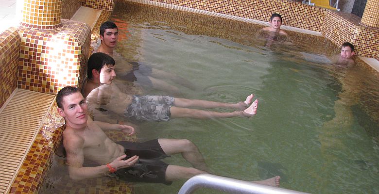 A „Vigyázó kéz” Gyermekvédelmi Egyesület megszervezte, hogy péntek kora délutántól nagyszámú gyermekcsapat birtokba vegye a wellness medencéket. A nyárias időben a beszélgetés mellett még napozni is lehetett a kinti élménymedencében. A kíváncsi és bátor gyerekeink a szaunát és a merülő medencét is kipróbálták. Nagy sikere volt a fiúk és lányok körében is a vízi aerobiknak és zumbának. A gyermekotthoni vacsora előtt még sok-sok banán, narancs és tej is eltűnt az éhes gyermekpocakokban.
