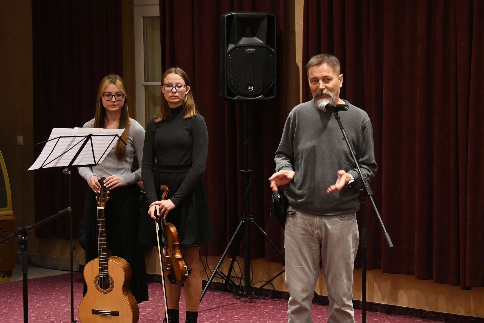 A tárlat megnyitója, Kiss László két lányának rögtönzött koncertjével zárult. A szombat este megnyitott kiállítást a Vörösmarty Színház Galériáján, a városi teátrum nyitvatartási idejében, illetve az egyes előadások előtt tekinthetik meg az érdeklődők.
