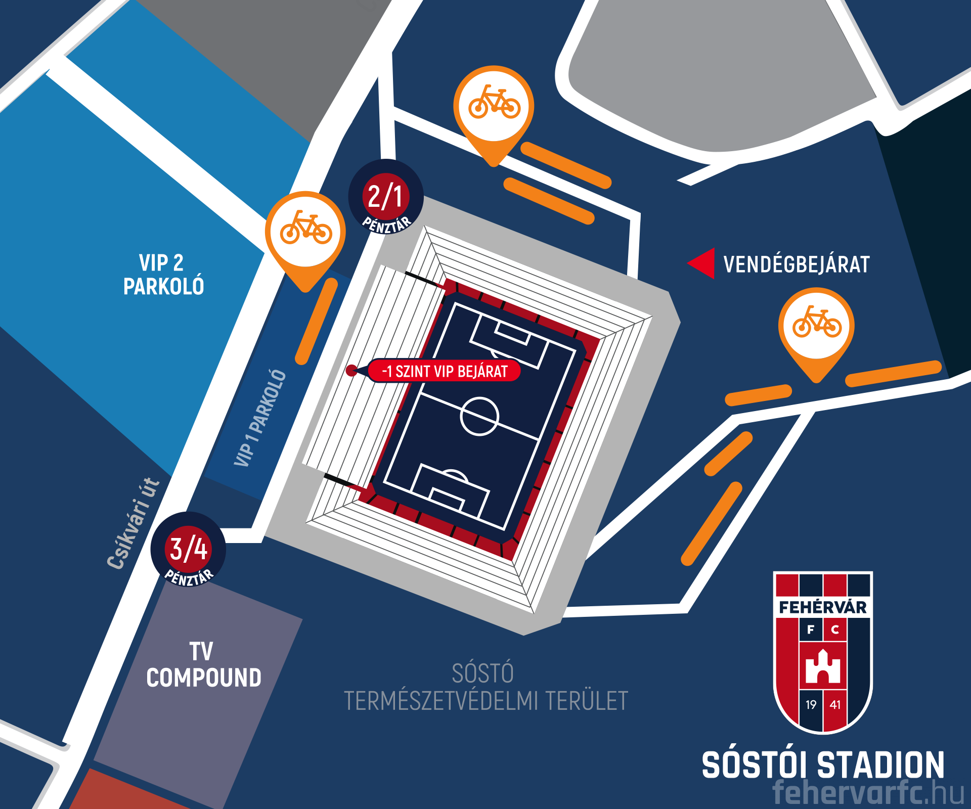 A stadion körül összesen 262 biciklitároló van, a klub őrzött biciklitárolót nem tud biztosítani.