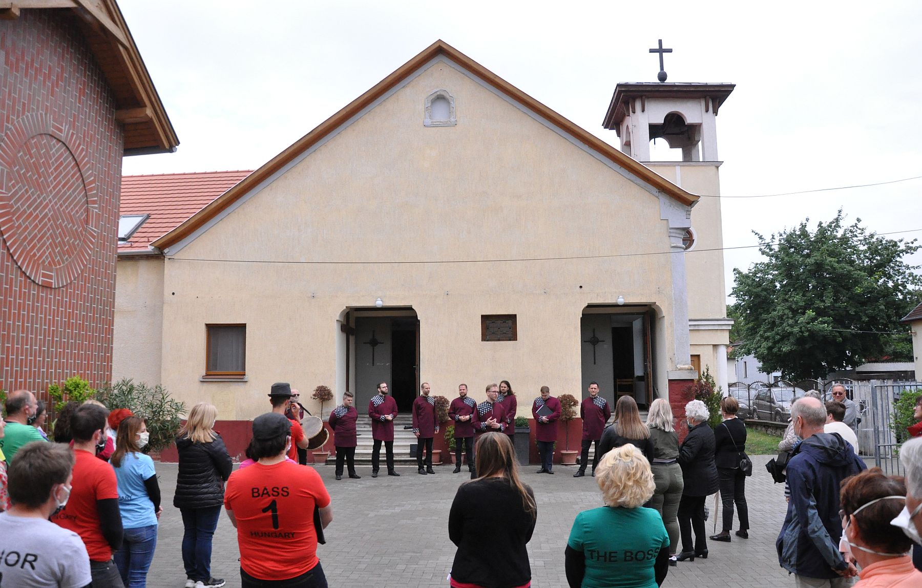 A karanténidőszak egyik legérdekesebb eseménysorozata, hogy a kórus partnereként május 17- én, vasárnap a Szent Efrém Férfikar Székesfehérvárra utazott három rövid szabadtéri koncert erejéig. A székesfehérvári Krisztus Király Plébánia udvarán koncerteztek, ahol barátaikkal, a Vox Mirabilis Kamarakórussal közösen is énekeltek, majd még két helyszínen, a Civil Központnál, majd a Rác utcában folytatódott a program az ott lakók örömére, akik nagyon szívesen kapcsolódtak be a közös éneklésbe is.