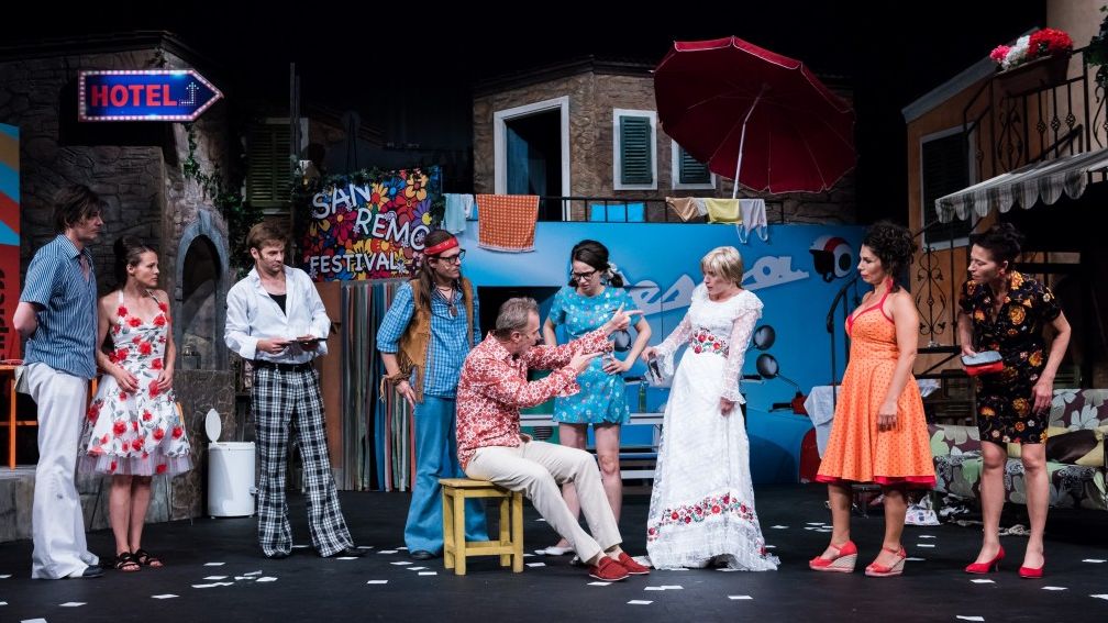 Fotók: Horváth GáborNem volt hiány nevetésből, fordulatokból, zenéből, táncból, szerelemből az Anconai szerelmesek nyári előbemutatóján. A kedvesen pikáns, szellemes zenés történet Anconába, egy kedves Adria-parti városkába varázsol minket, ahol minden megesik, aminek meg kellett esnie.