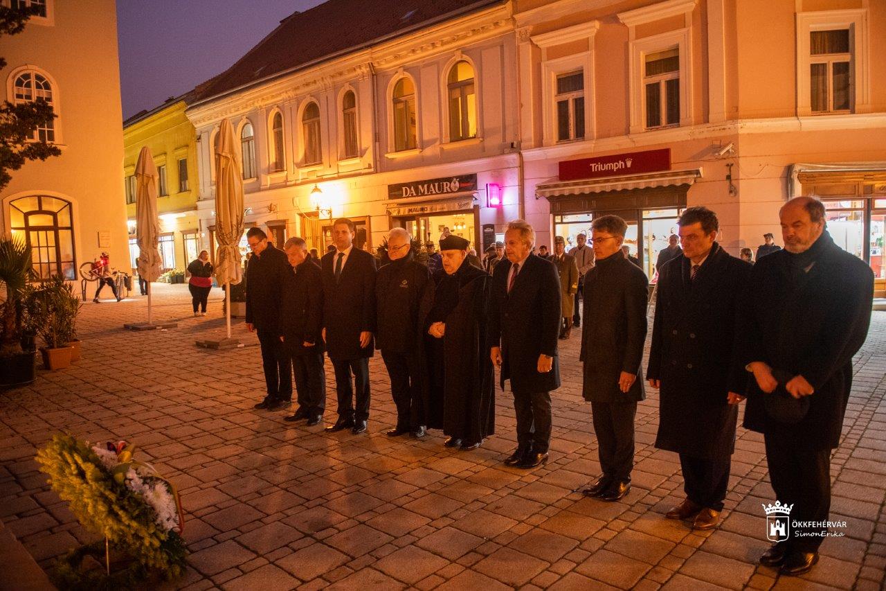 A hősök emléke előtt virággal tisztelegtek a Székesfehérvár Helyőrségben szolgáló magyar és nemzetközi katonai szervezetek képviselői, a vitézi rendek, a huszár, honvéd és katonai hagyományőrző egyesületek jelen lévő tagjai.