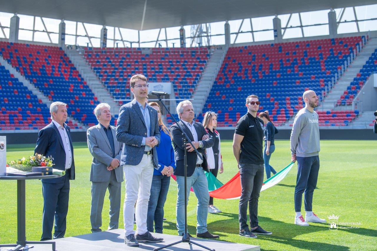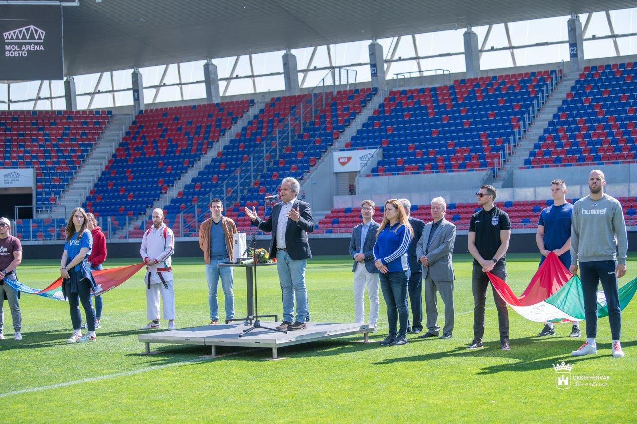 Az egész napos rendezvény megnyitóján dr. Cser-Palkovics András polgármester köszöntötte résztvevőket. Székesfehérvár több mint egy évtizede sporttal ünnepel május első napján, amely közösségformáló, igazi szép eseménye a városnak, mondta a polgármester, aki örömét fejezte ki, hogy két év kihagyás után ismét lehetőség van együtt tölteni ezt a szép napot. „Ünnepi pillanatokat is megélhetünk, hiszen a Székesfehérvár Sportjáért Díjat ma egy legendás szakember és egy legendás sportklub kapja meg, amely legendákat nevelt, akik hírnevet szereztek városunknak, hazánknak.” Székesfehérvár polgármestere gondolatai zárásaként köszöntötte az Alba Fehérvár irányító-átlövőjét, Triscsuk Krisztinát, aki az idény végén visszavonul. A sportbarátok nagy tapssal köszöntötték a kézilabdázót.