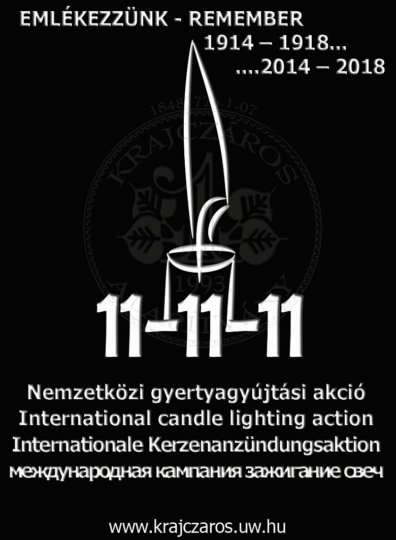 A Háborús Emlékhelyeket Gondozók Társasága és tagszervezetei 2014. november 11-én Nemzetközi Gyertyagyújtási Akciót szervez. Kérnek mindenkit, hogy a jelzett napon 11 óra 11 perckor egy szál mécses vagy gyertya meggyújtásával fejezzék ki tiszteletüket a hazájukért halt katonák iránt. A program fő szervezője a Krajczáros Alapítvány, a centenáriumi kegyeleti megemlékezés fővédnöke Böjte Csaba testvér, a dévai Szent Ferenc Alapítvány kuratóriumelnöke.