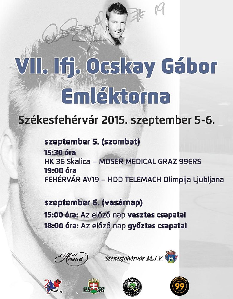 2015. szeptember 5-6. között immáron hetedszer rendezik meg az Ifj. Ocskay Gábor Emléktornát. A rangos nemzetközi eseményen ezúttal is neves ellenfelekkel szemben tökéletesítheti formáját az EBEL-szezon előtt a Fehérvár AV19. A házigazdán kívül a szlovák HK 36 Skalica, a szlovén Olimpija Ljubjana, valamint az osztrák Moser Medical Graz 99ers is pályára lép a tornán. Az esemény különlegességét csak növeli, hogy szombaton este 18.00 órától kerül sor az Ifj. Ocskay Gábor emlékére készült szobor ünnepélyes avatására is, amely a Jégcsarnok főbejárata előtt állít emléket a Volán halhatatlan klasszisának.