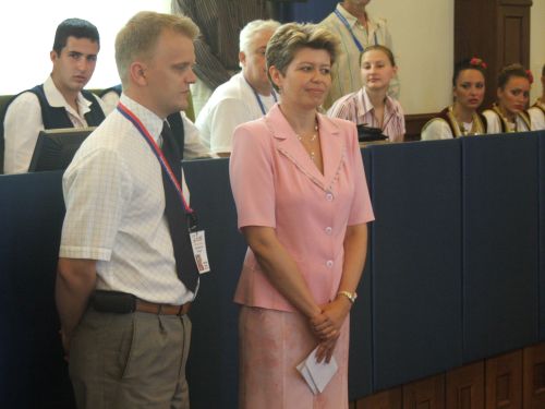 A Városháza Nagytanácstermében látta vendégül ma délelőtt Székesfehérvár Megyei Jogú Város Önkormányzata a „Királyi Napok” Nemzetközi Néptáncfesztivál résztvevőit. A tánccsoportok rövid ízelítőt adtak hazájuk népdalkincséből, majd Székesfehérvár alpolgármestere, dr. Csapó Csilla köszöntötte a vendégeket, aki reményét fejezte ki, hogy a következő napok során sok székesfehérvári ismerkedik meg a különböző népcsoportok kultúrájával, táncaival és népdalaival. Az alpolgármester köszönetet mondott a szervezőknek, akiknek a segítségével idén is megvalósulhatott a nagyszabású rendezvénysorozat.
