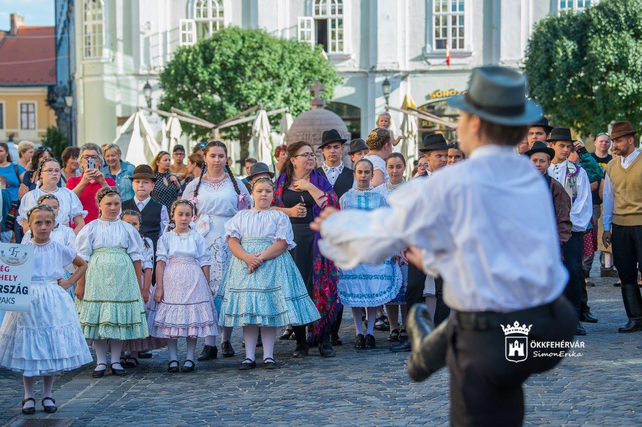 A táncosok az Országalmától indulva, több alkalommal és helyszínen mutatkoztak be a lelkes fehérvári közönségnek, szépséges viseleteikben.