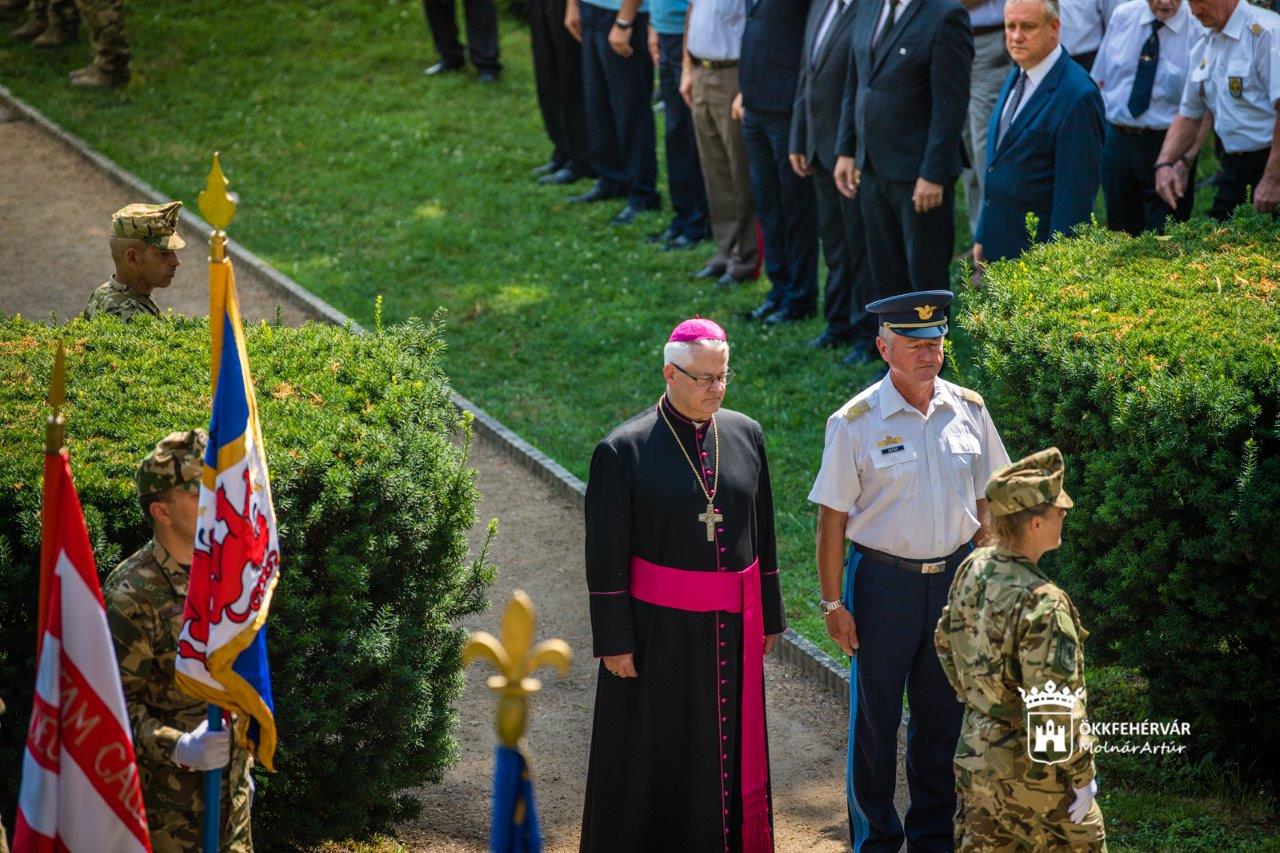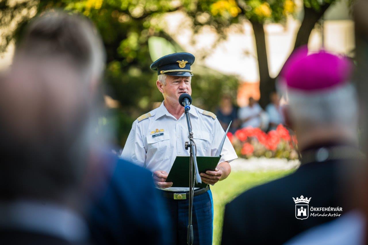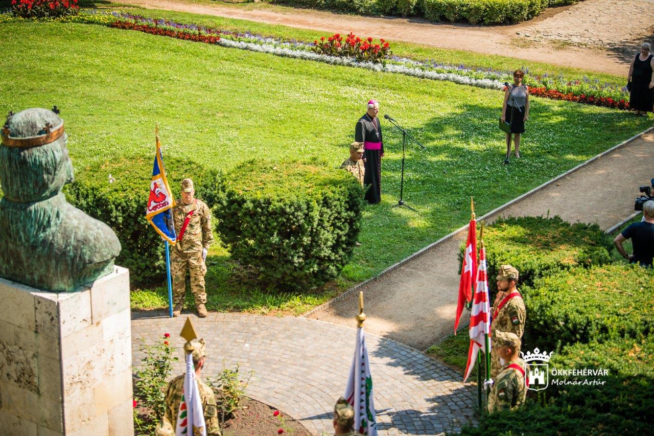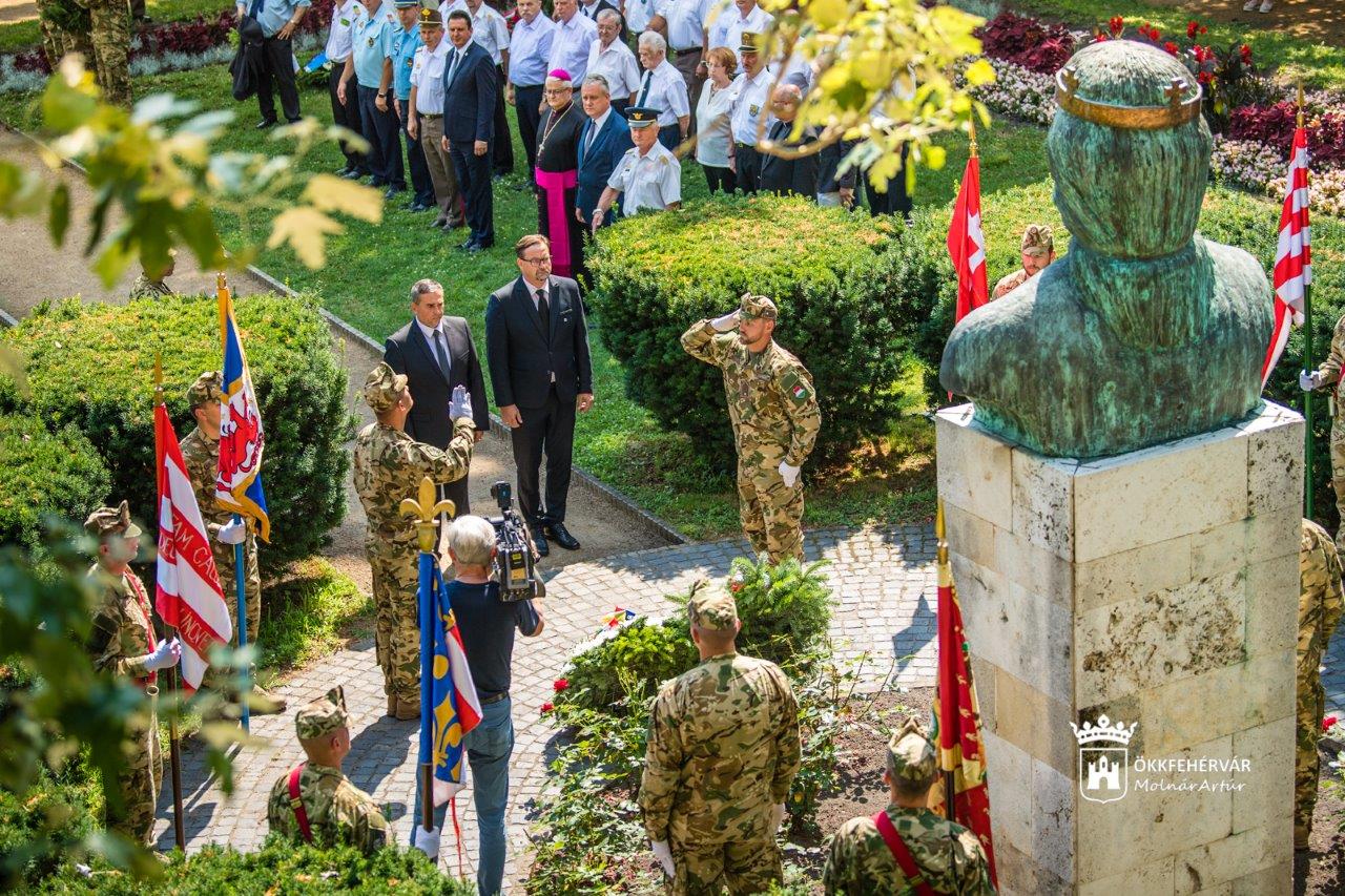 Az ünnepi megemlékezés koszorúzással zárult. Székesfehérvár Önkormányzata nevében Viza Attila tanácsnok vett részt, aki Wilmek Tiborral, a Fejér Megyei Közgyűlés alelnökével közösen helyezte el az emlékezés virágait a szobornál. A szobornál koszórút helyezett el dr. Simon László kormánymegbízott és Dancs Norbert a Székesfehérvári Járási Hivatal vezetője. Az eseményen közreműködött a Magyar Honvédség Kaposvár Helyőrségi Zenekara.