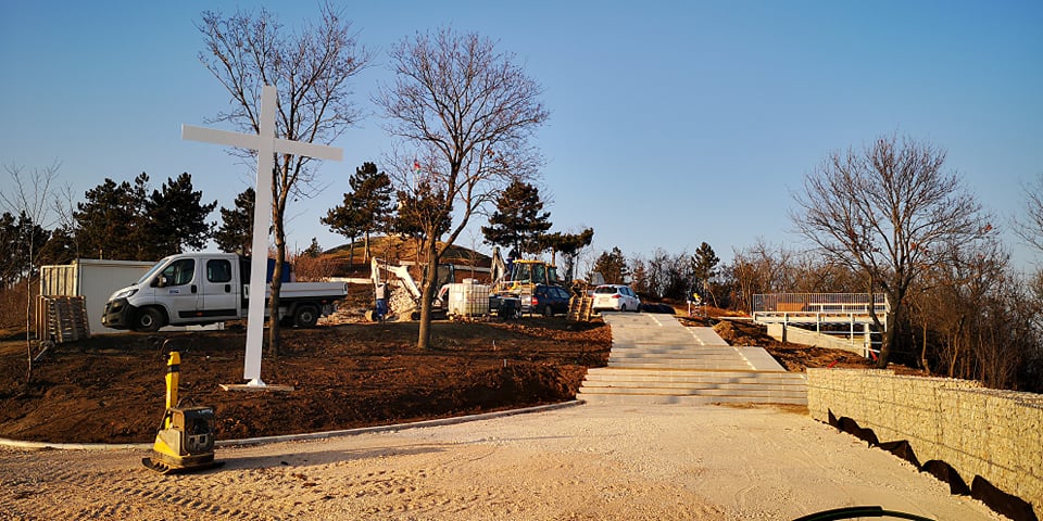 A Csúcsos-hegy alatti parkolók már elkészültek, mint, ahogy az emlékműhöz felvezető két gyalogos út is és a több ezer tő növényből is nagyon sokat sikerült már késő ősszel elültetni.